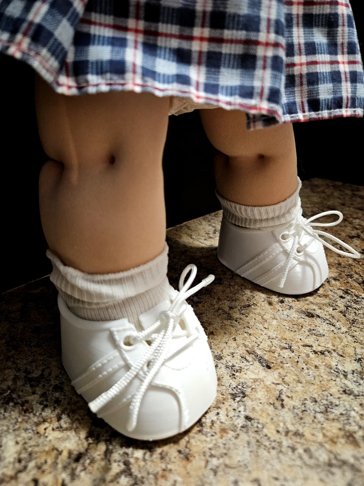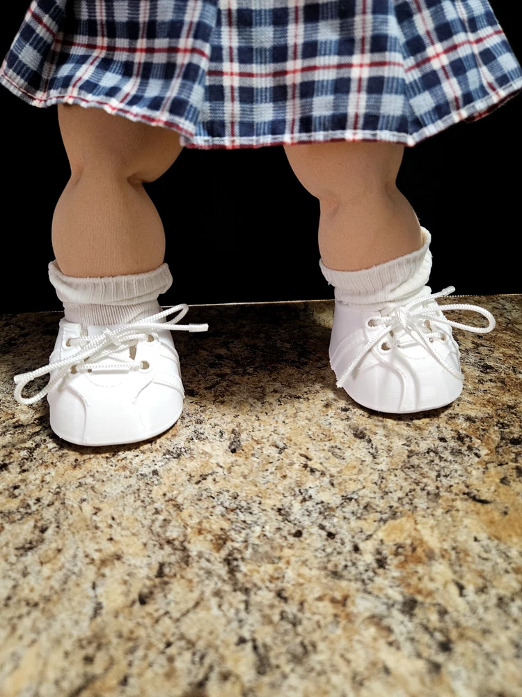 ~Made And Assembled In Americas Heartland~ Authentic Cabbage Patch Kid (CPK) Replacement Doll Sneakers -Karma Chameleons! Vintage Collectable CPK doll Accessories These stylish sneakers are designed and additively remanufactured in Ultra White material and sport all white Laces . These sneakers are a perfect fashion accessary for your beloved cabbies. And with a steady hand, can easily be personalized by adding a pop of color with any permanent color ink you are vibing with. Match your personality, dolls outfit or leave them vividly White. Either way these sneakers and durable laces will elevate your cabbies wardrobe to new heights. * DOLL NOT INCUDED