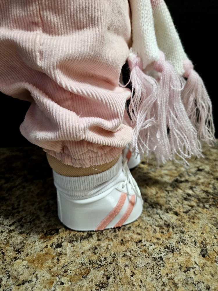 ~Made And Assembled In Americas Heartland~ Authentic Cabbage Patch KId (CPK) Replacement Doll Sneakers -Pretty In Pink Edition! Vintage Collectable CPK doll Accessories These stylish sneakers are designed and additively remanufactured from a soft yet pliable TPU material specifically for your beloved Cabbies. These sneakers are a perfect fashion accessary for adding a pop of personality to your dolls outfit. Featuring durable waterproof iconic 'Dusty Rose' Pink stripes. These sneakers and durable laces will elevate your cabbies wardrobe to new heights. * DOLL NOT INCLUDED