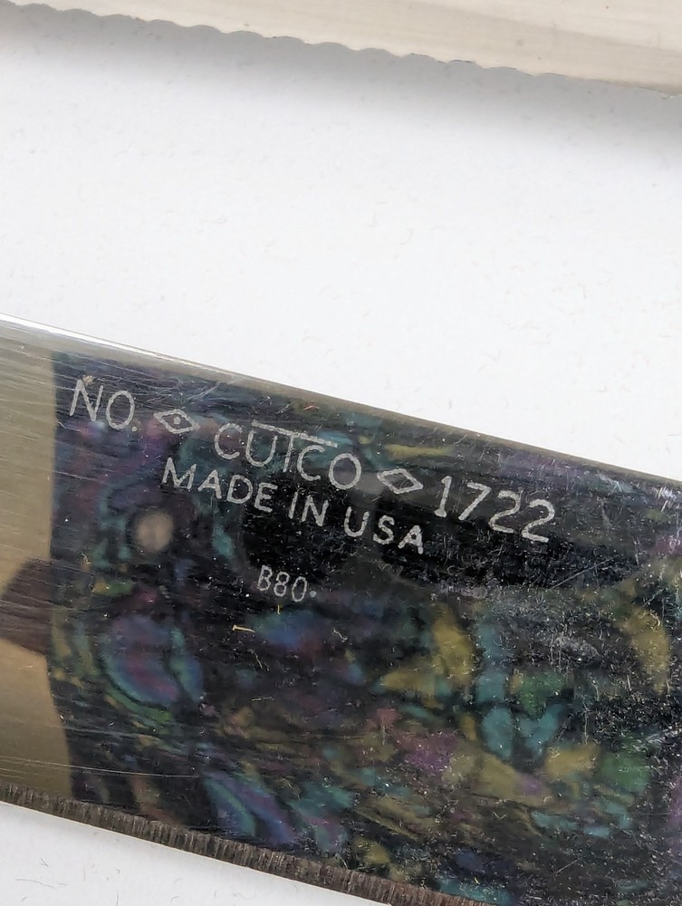 Vintage CUTCO Knives Set with Marble Swirl Handles Signed T Lamb Models 1722-1729