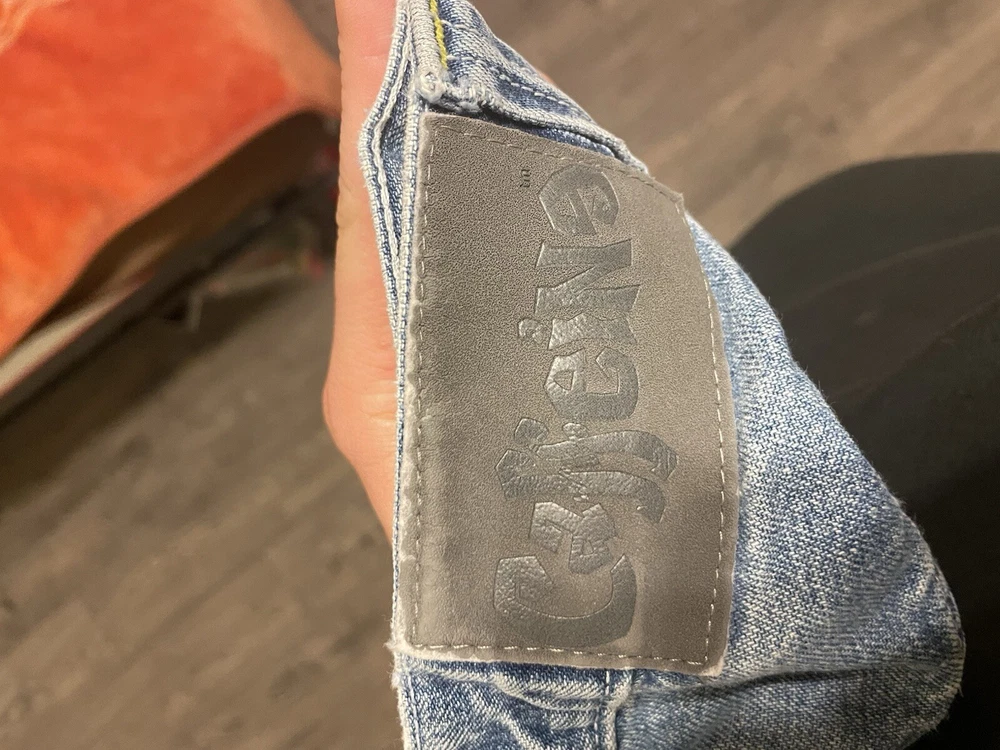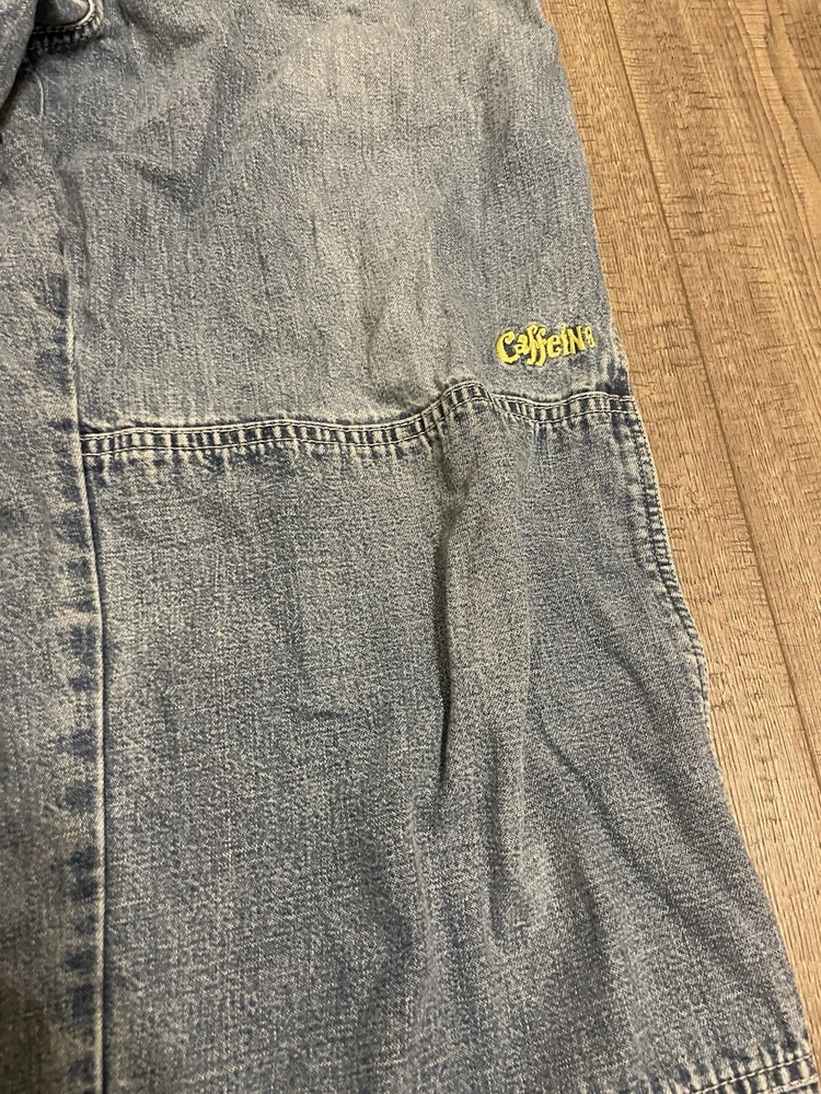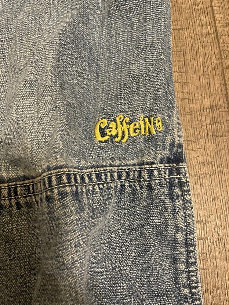 Leg Style: Wide-Leg Waist Size: 28 in Inseam: 28 in Color: Blue Pattern: Solid Fabric Wash: Medium Fit: Relaxed Country/Region of Manufacture: United States Size Type: Regular Style: Wide-Leg Material: 100% cotton Accents: Embroidered, Logo Vintage: Yes Rise: Mid (10-12 in) Garment Care: Machine Washable Theme: 90s, Y2k Department: Men Brand: Caffeine Fabric Type: Denim Size: 28 Closure: Button, Hook & Loop Type: Jeans