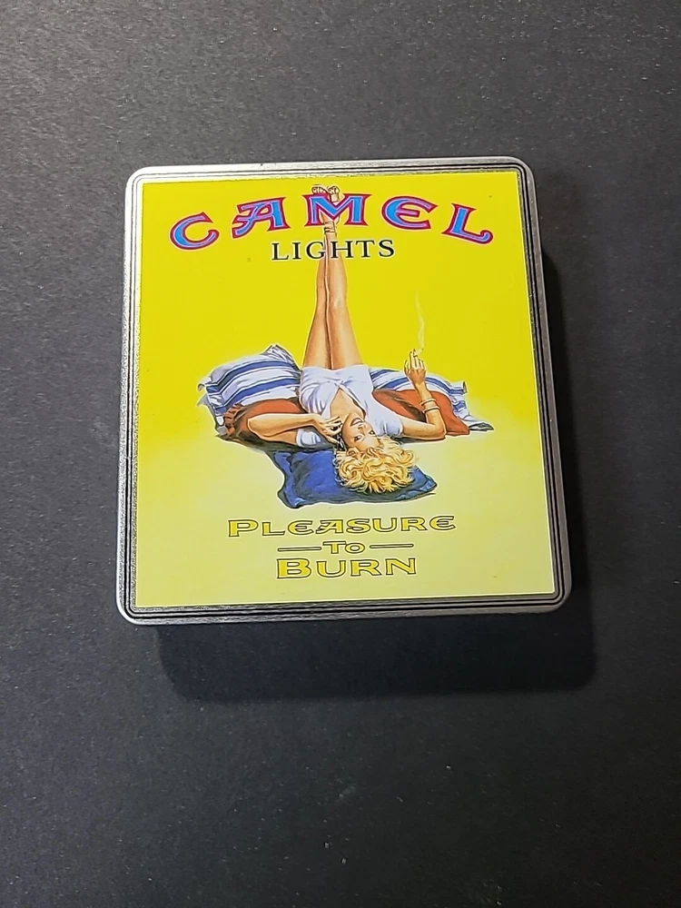 Vintage Camel "Pleasure To Burn" cigarette tin from the 1990s, made in Germany. Great condition.