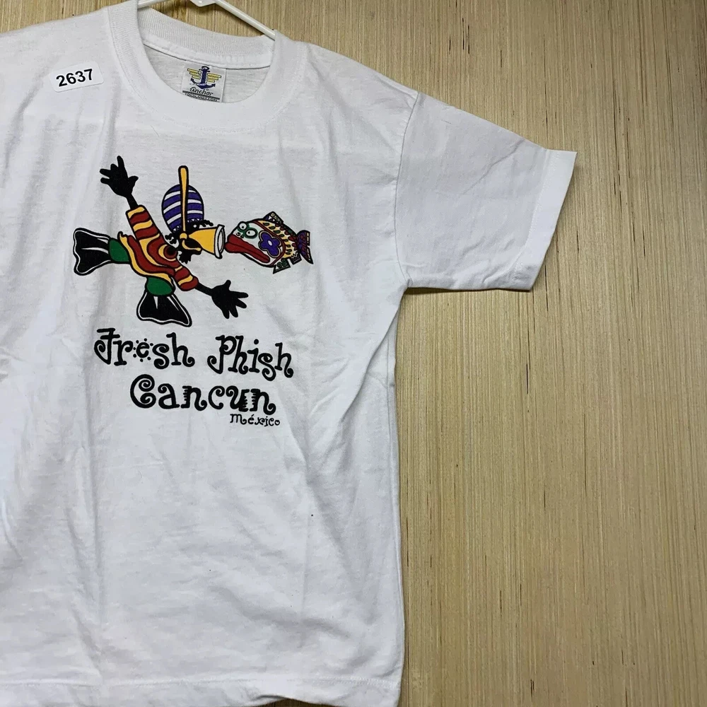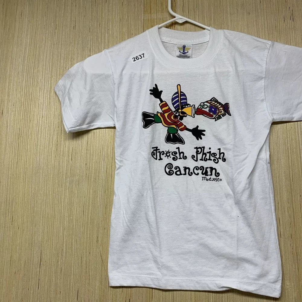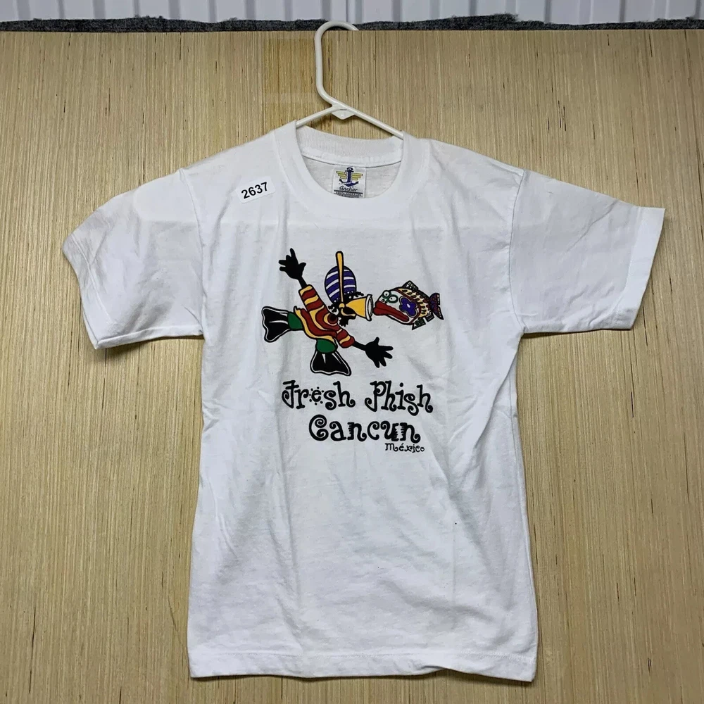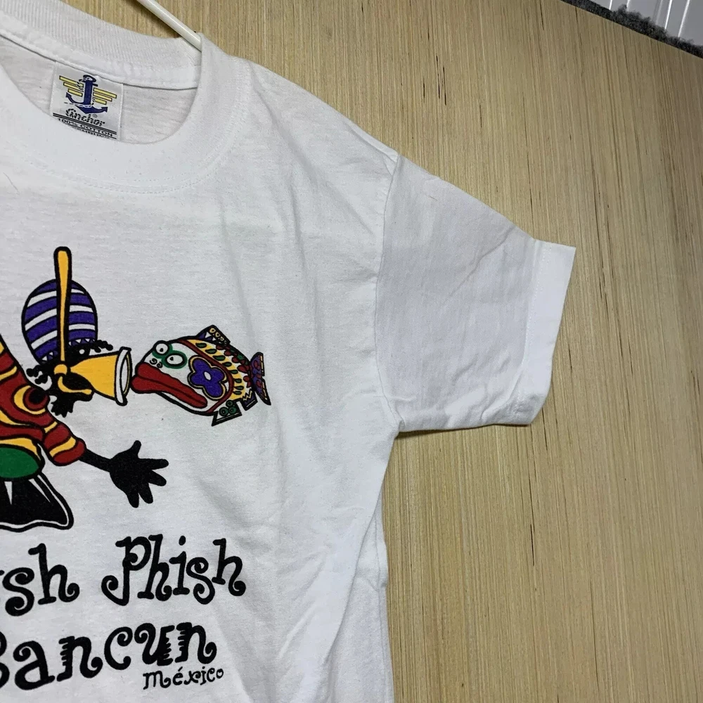 9Get ready to hit the beach with this vintage Cancun Mexico shirt! Made from a comfortable cotton blend knit fabric, this shirt features a solid pattern with a crew neckline and short sleeves. The white shirt is accented with blue details, including an embroidered logo and button accents. This limited edition shirt is perfect for any 90s enthusiast and is preshrunk, lightweight, and breathable, making it suitable for all seasons. It also features a hood and full zip for added comfort. Don't miss out on this unique piece of Friends and Free! branding.