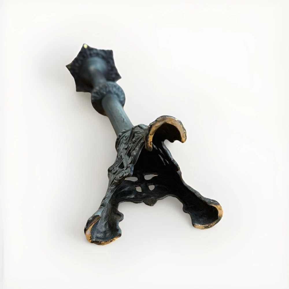 Vintage Candlestick holder Solid Brass Gothic Style Design 19" Tall Set of 2 ❤️Details: -Height: 19 in -Weight: 5.9 lbs. -Width:5x5 in - Greenish gray or deep gray -Ornate finish -Victorian / Gothic Style - Cast Brass - General wear from storage ❤️This item is in excellent vintage condition! Free from chips, cracks, crazing, no stain or repairs. For more details, please refer to the attached photos. If you have any questions, don’t hesitate to reach out. ❤️We’re delighted to offer free shipping with a bundle of care, and we ship promptly!🚚🚚 ❤️Thanks a bunch!