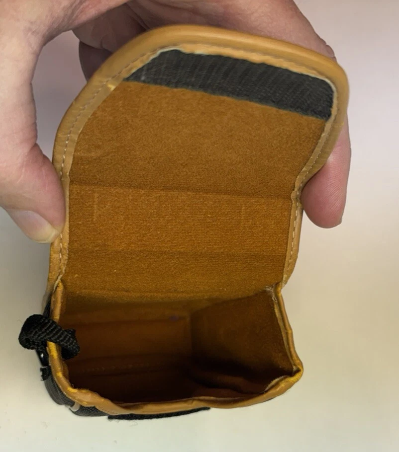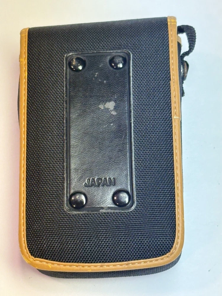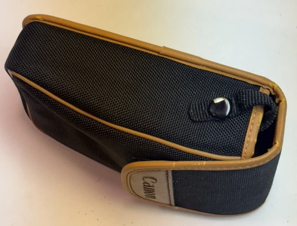 This is a vintage Canon soft camera case made in Japan. It is designed in black canvas material with a belt loop. The case is specifically made to fit a point and shoot camera. Please see photos for item condition.