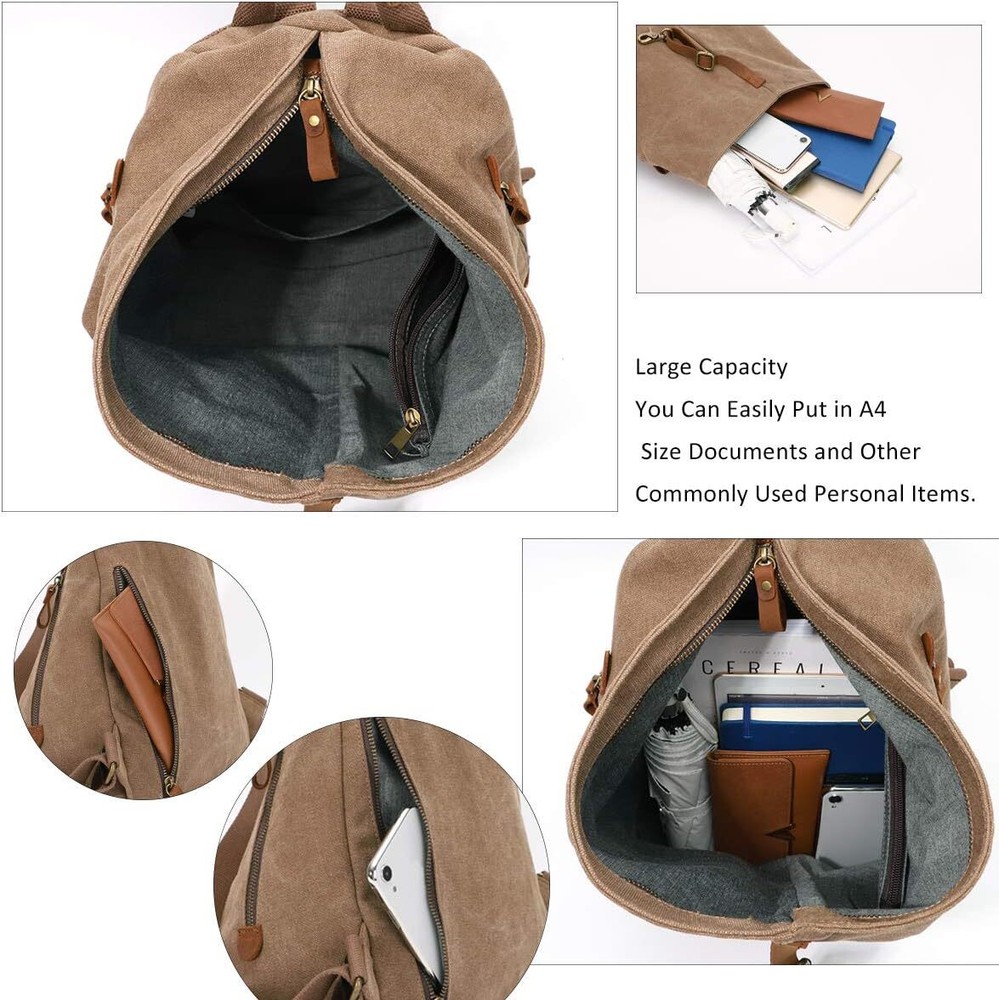 This backpack is a total game-changer! The rugged canvas and crazy-horse leather combo looks stylish while being tough enough for daily abuse. It’s surprisingly roomy—fits my laptop, gym gear, and even a water bottle with space to spare. The waterproofing keeps my stuff dry, and the adjustable straps make it super comfy for long walks or travel. Perfect for work, adventures, or just running errands in style. Love the vintage vibe—it gets compliments everywhere! Highly recommend for anyone who wants durability and function without sacrificing looks.