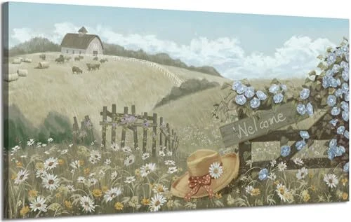 Return Policy Fast Delivery Trusted seller Vintage Canvas Wall Art for Living Room Blue Sky and Wildflowers Barn Picture Farm Cow Landscape Painting Village Nature Meadow Botanical Print Yellow White Daisy Floral Farmhouse Artwork 20x40inch Product Description Farm Natural Landscape:This canvas wall art brings a traditional floral subject to your walls with its collection of colorful flowers and dense meadow.It depicts a peaceful and relaxing country life,rustic barn and cows painting.It comes in vibrant yellows,purples,and greens hues set against a distant blue sky landscape,with a textured greens background to make this botanical wall art stand out wver you hang it Country Rural Scene Barn Picture:The vintage wall art printed on premium quality canvas using the fade-resistant ink.This farmhouse wall art shows a field of colorful wildflower blooms that bring a smile to your face when you walk into the room.With its charming countryside aesthetic,it complements traditional and modern farmhouse decor styles alike Lightweight and Ready to Hang:This bedroom wall art is gallery-wrapped,hand stretched by professionals,sending with two different kinds of nails as your choices.A single hook is affixed to the back wooden bar for hassle-free hanging right out of the box Perfect Wall Decor Idea:This farm canvas print brings a natural,floral feel to your bare walls in the living room,bedroom,kitchen,guest room and office.Different levels of paint make the whole picture vivid and can brighten the entire room.Great gifts for your relatives and friends Buy with Confidence:If any problems or concerns with this nature landscape wall art canvas, we are always for you.We are pursuing a good shopping experience for our customers by this flower wall art Shipping Returns Payment Shipping Shipping is FREE to all addresses other than APO/PO boxes in the lower 48 states. All our stock ships from US-based warehouses. Shipped via USPS or UPS (depending on location and package weight) Unless stated otherwise, all orders will ship within 24-72 hours of your payment being processed. Check our feedback to see the great reviews of FAST shipping we offer. Returns Seller does not accept returns Payment We currently accept payment via eBay managed payments only. Once payment is cleared, we will dispatch your shipment within 1-3 business days. Please refer to the "Shipping" tab for more information regarding shipping speed to your destination.