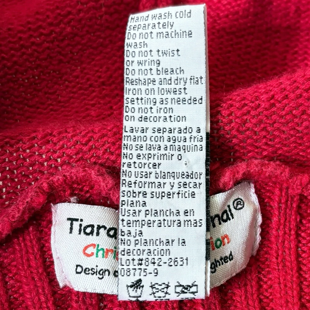 Vintage Cardigan - Tiara International - Christmas - Hooded / Zip - Women's XL Details: -Christmas Collection -55% Ramie, 45% Cotton -Embroidered -Beaded -Multicolored Measurements: -Length: Approximately 23" inches -Chest: Approximately 43" inches -Zipper: Approximately 20" inches -Sleeve(s): Approximately 23" inches Washing Instructions: -Hand wash cold separately -Do not machine wash -Do not twist or wring -Do not bleach -Reshape and dry flat -Iron on lowest setting as needed -Do not iron on decoration *Cleaned per manufacturer's instructions. Condition: -Good, pre-owned condition. Moderate pilling on hood/cuff trim. Beadwork/appliques subject to unravel with further handling. Keywords: christmas cardigan, ugly christmas sweater, beaded, embroidered, festive, holiday, womens clothing, red, multicolored, hooded christmas top, tiara international sweater, christmas collection, vintage christmas, holiday knitwear, holiday party sweater