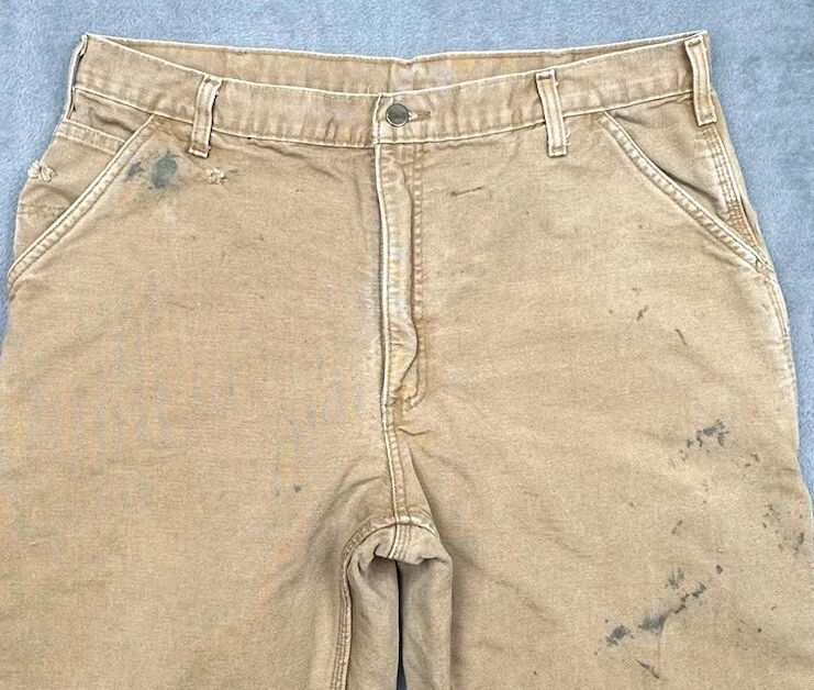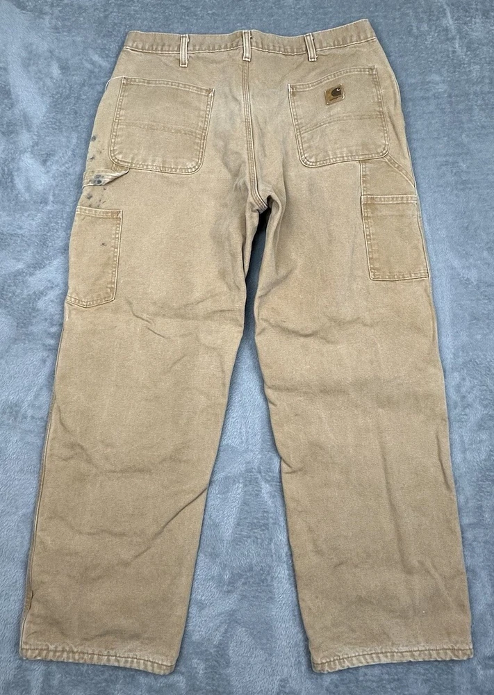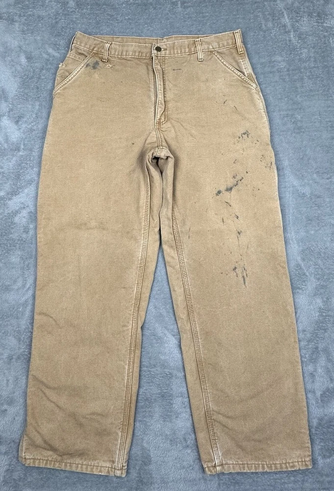 Vintage Carhartt Carpenter Pants Mens 38x30 (Fit 36x30) Brown Fleece Lined READ LOTS of stains and 2 small holes but in overall good condition and laundered. Please see measurements in photos I ship next business day, but sometimes same business day and Saturday if order is paid for early enough. Please let me know if you have any questions. I am open to offers!! Feel free to look at other items in my store! Thanks!