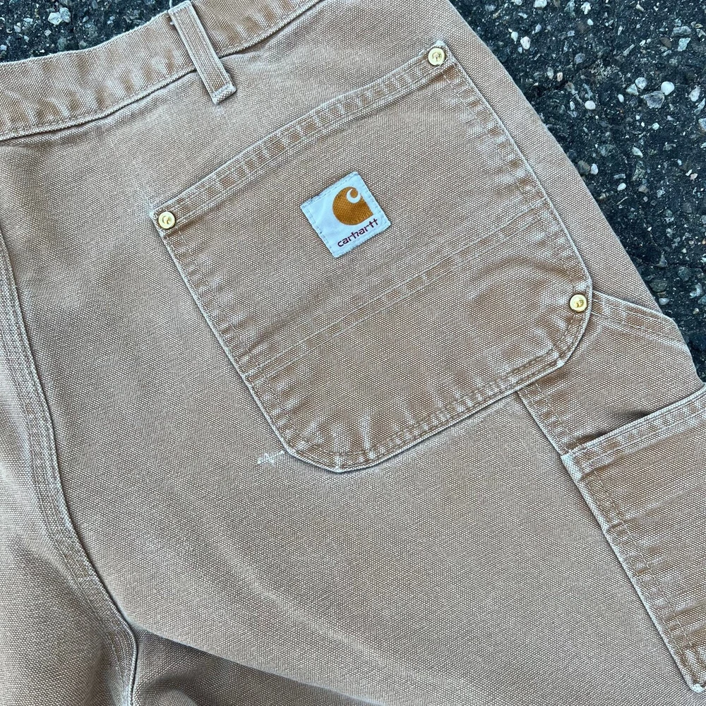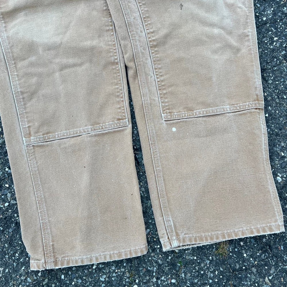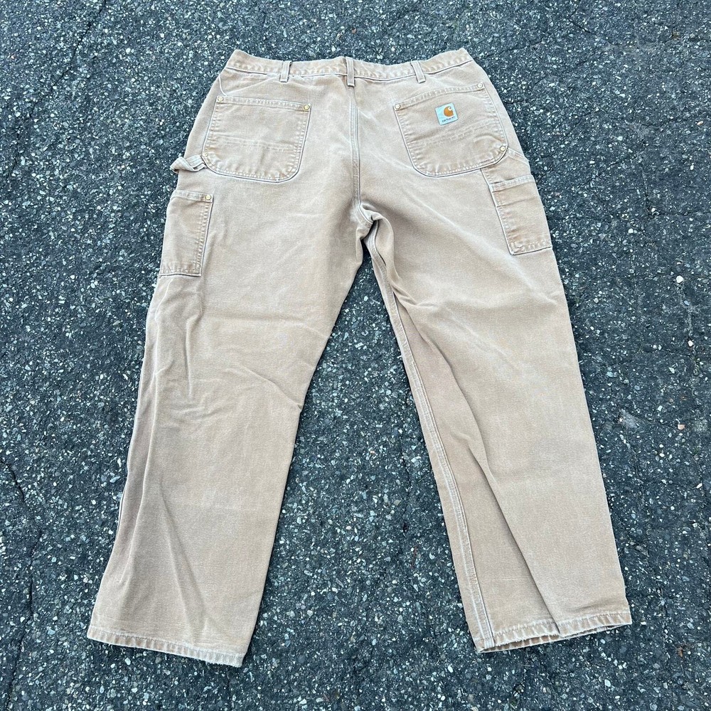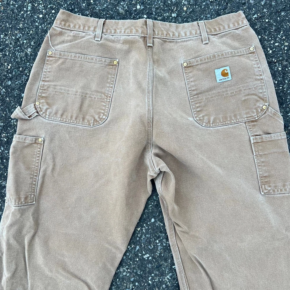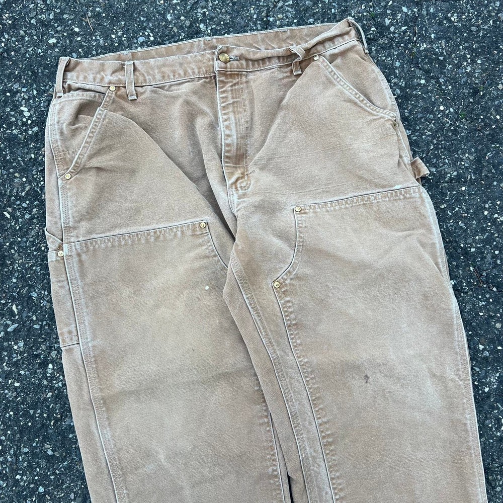 Vintage carhartt faded brown double knee work wear carpenter pants. Awesome pair. Measure 35x29 and a 9.25 leg opening. Please check measurements before purchasing. I do my best to show any flaws in pictures. Quick shipping! Bundles encouraged! @ants_haul on Instagram. 73!!!