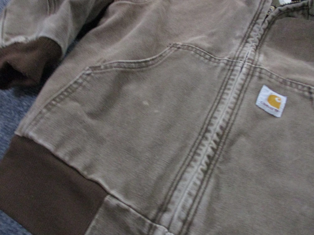 For sale is a used Carhartt Jacket Measurements: Please see above photos for all measurements. Compare to your favorite garments for best fit. Stained on front. Light distressing on sleeves. I ship items out EVERY DAY so EXPECT a QUICK delivery!