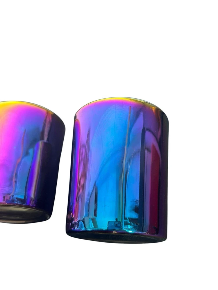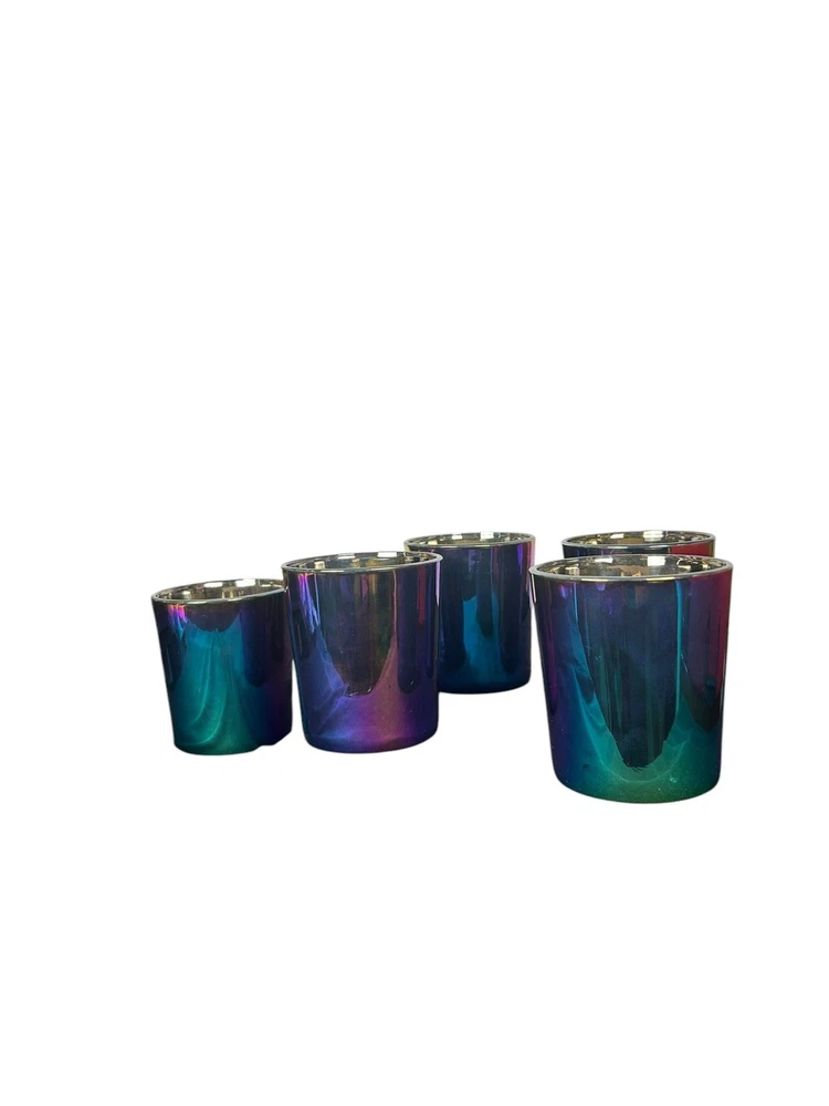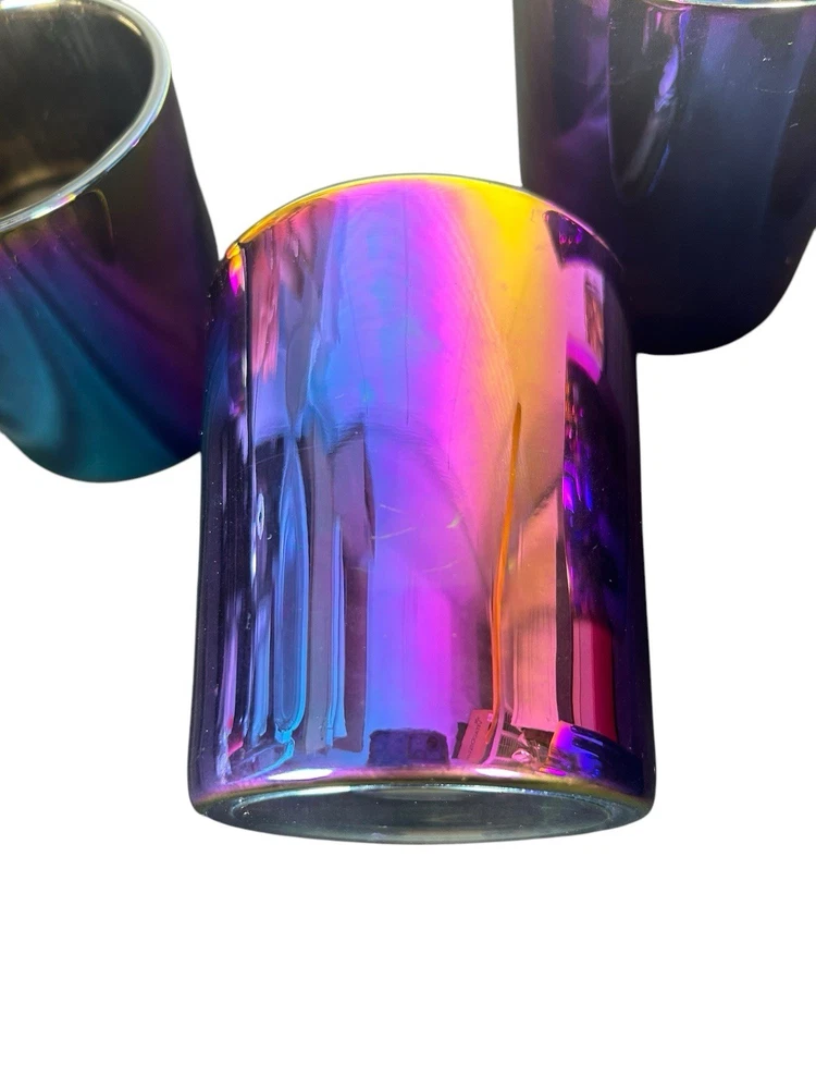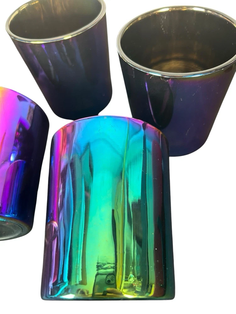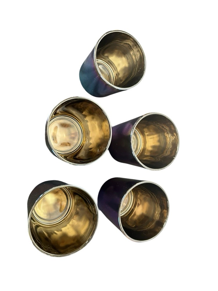 Set of 5 Glasses Or Candle Vases Vtg Carnival Glass Iridescent Oil slick Luster Good vintage condition. Normal signs of wear and use. There are some scratches on about 3 of the glasses/vases, and the rest has some minor scratches. Please study pictures before purchasing Feel free to ask us any questions. Thank you for visiting our store! Shlv bx