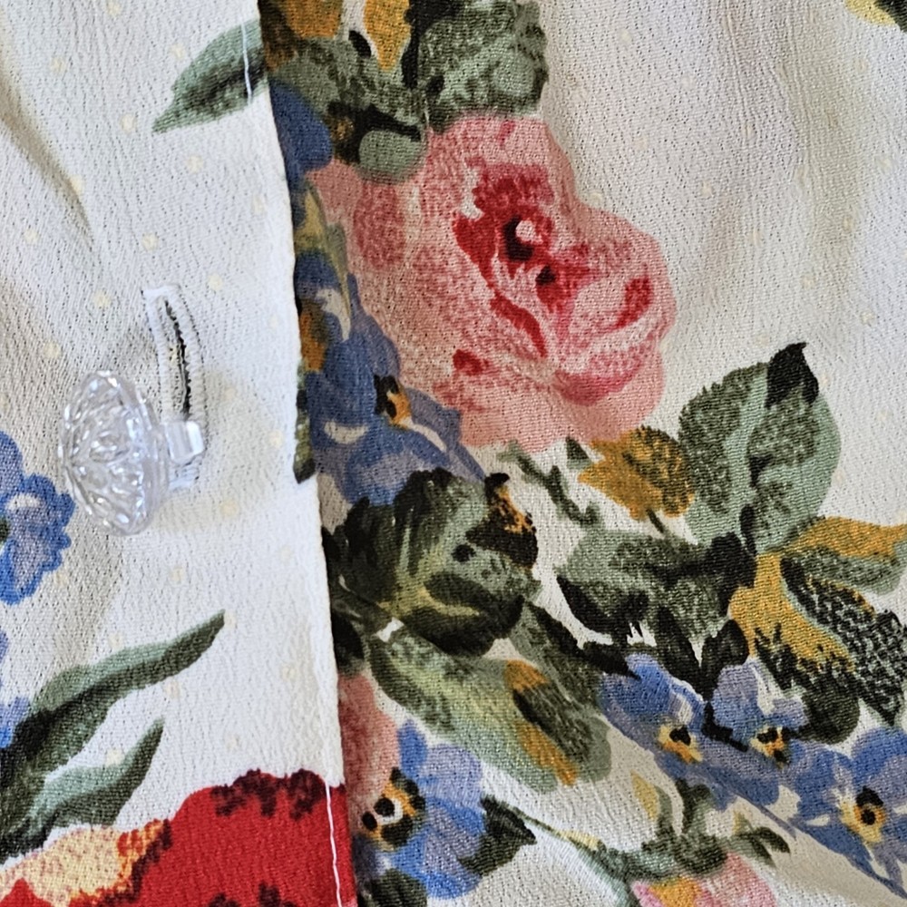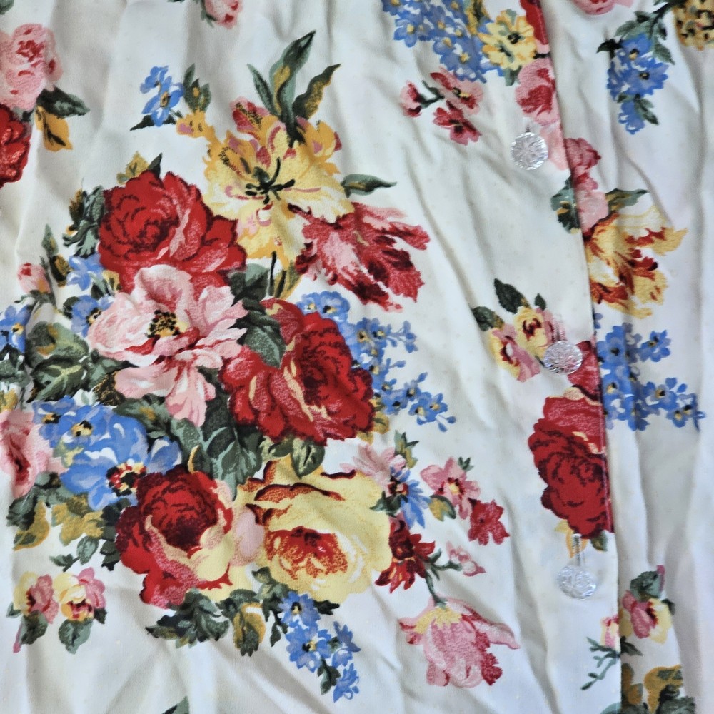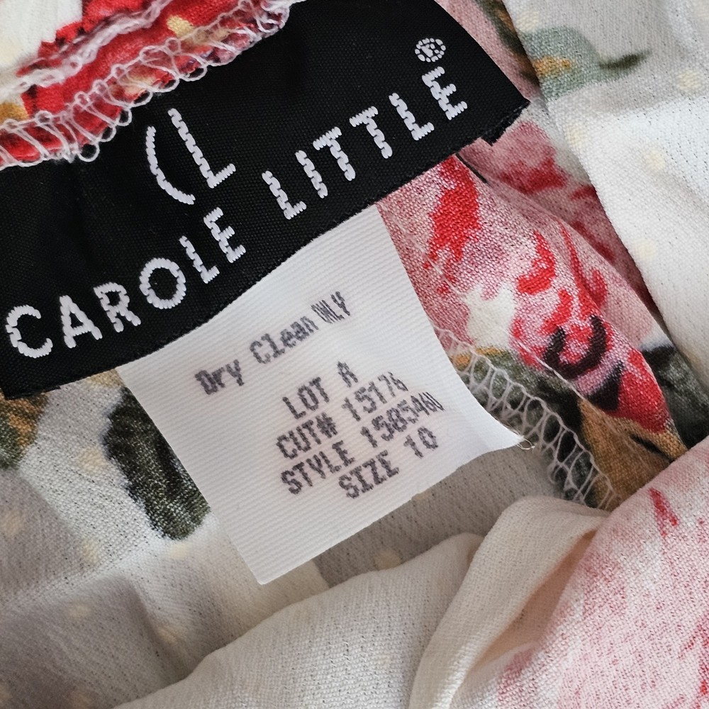The Vintage Carole little Maxi Skirt in size 10 is a beautiful long button-down skirt in a floral pattern, perfect for a casual occasion. Made of rayon fabric, this multicolor skirt features an elastic waist for comfort. With a mid-rise and a bohemian, hippie, and tropical theme, this maxi skirt is ideal for summer, fall, and spring seasons. Designed by Carole Little in the United States, this vintage piece exudes a peasant cottage core style that is sure to add a touch of charm to any wardrobe.