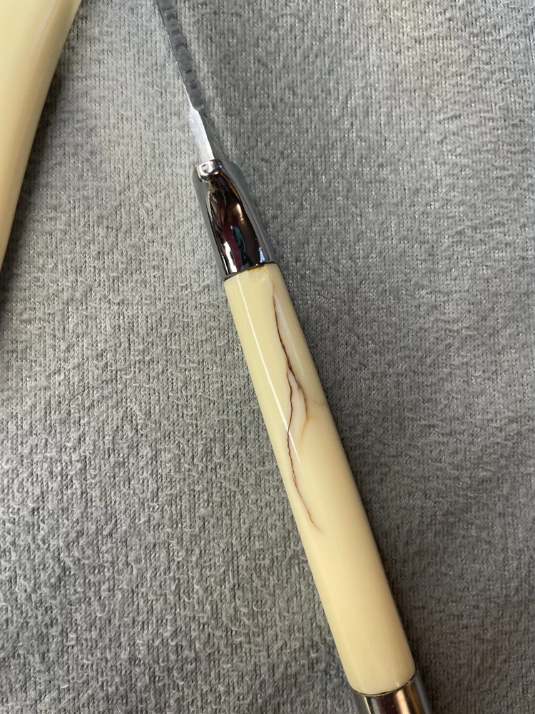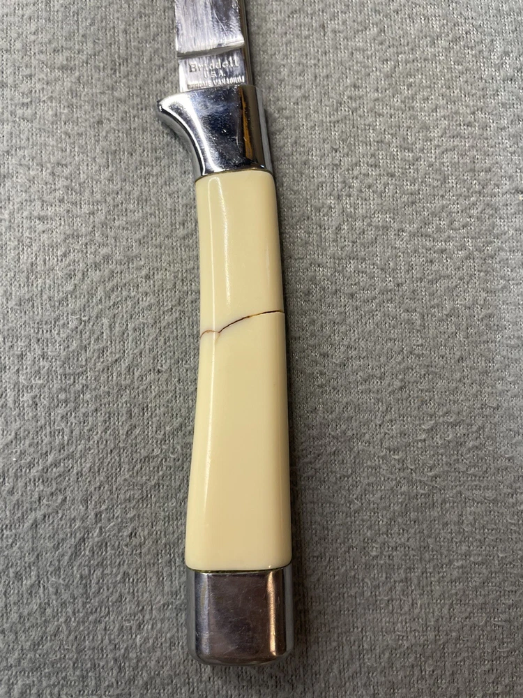 Elevate your dining experience with the vintage set of 8 Carvel Hall by Briddell steak knives. Crafted from high-quality Chrome Vanadium, these knives boast durability and rust resistance, ensuring they remain sharp and impeccable through frequent use. The sleek silver color adds a touch of sophistication to any table setting, making them a perfect complement to your existing cutlery ensemble. Each knife features a straight blade edge, designed for effortlessly slicing through meat, delivering a precision cut every time. Made in the United States, this set is a testament to classic design and craftsmanship, making it an ideal choice for those who appreciate the finer details in their kitchen arsenal. Whether for special occasions or everyday use, these steak knives are a timeless addition to your dining collection.