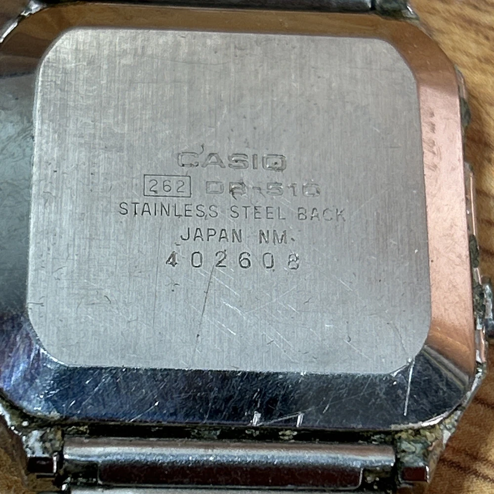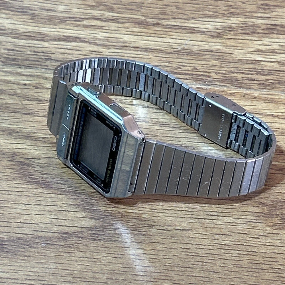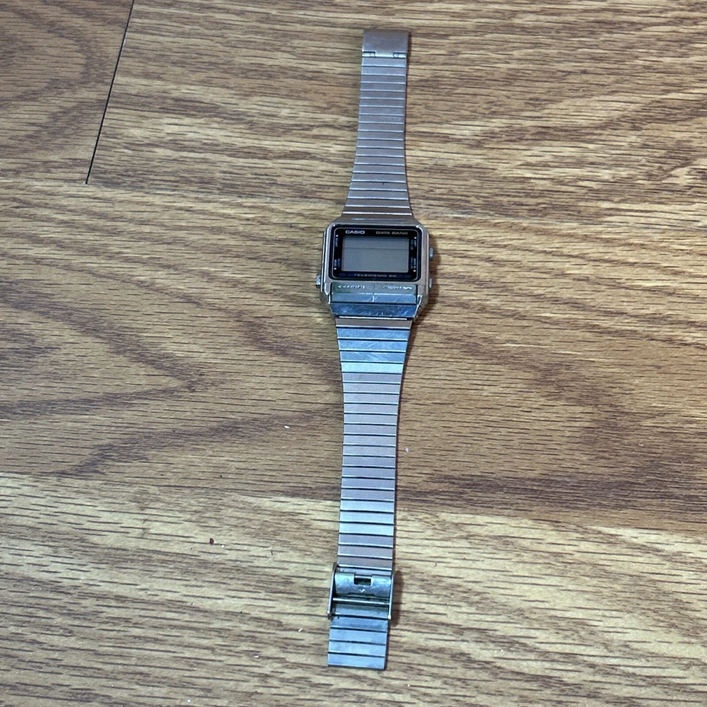 Features: 12-Hour Dial, 24-Hour Dial, Acrylic Crystal, Alarm, Annual Calendar, Backlight, Calculator, Chronograph, Chronometer, Date Indicator, Day/Date, Day/Night Indicator, Day Indicator, Easy to Read/Large Numerals, LCD Display, LED Display, Limited Edition, Luminous Dial, Mineral Crystal, Multifunction, Timer, Triple Calendar, Water-Resistant, World Time Movement: Quartz With Original Box/Packaging: No Dial Color: Black, Blue, Gray, Multicolor, Silver Band Material: Metal, Resin, Stainless Steel Handedness: Left Case Color: Silver Bezel Color: Silver Type: Wristwatch Customized: No Indices: Arabic Numerals Department: Men With Papers: No Case Size: 32 mm Vintage: Yes Display: Digital Band Width: 20 mm Band Color: Silver Caseback: Snap Lug Width: 20 mm Case Thickness: 8 mm Water Resistance: Not Water Resistant Model: Casio Databank Case Finish: Polished Watch Shape: Square Style: Casual, Classic, Sport, Standard/Classic Band/Strap: Two-Piece Strap Brand: Casio Country/Region of Manufacture: Japan Reference Number: DB500 Bezel Type: 24-Hour, Fixed, Smooth Case Material: Crystal, Plastic, Resin, Stainless Steel