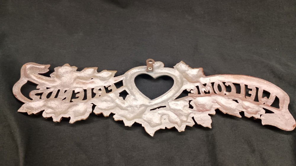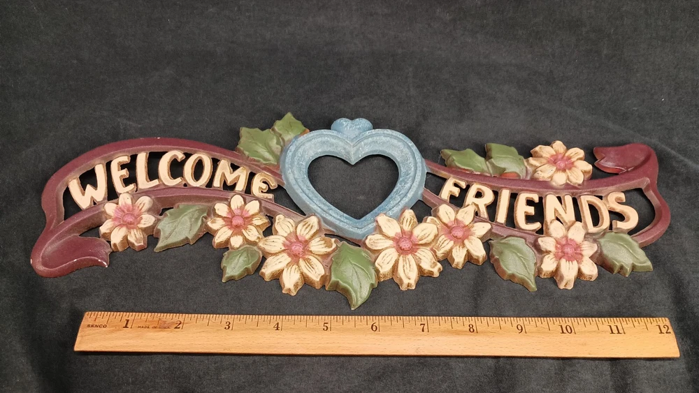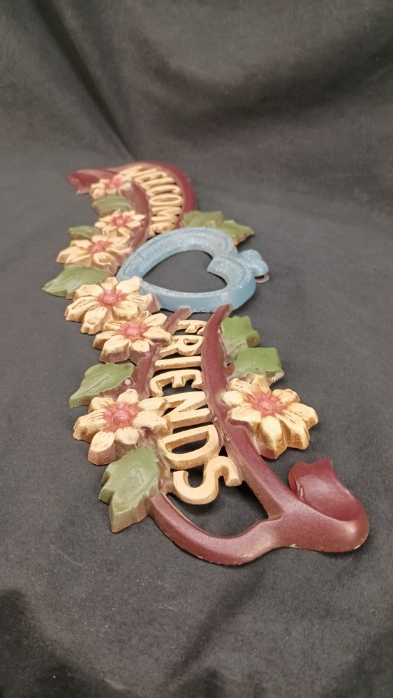 Vintage Cast Aluminum Hand-painted Welcome Friends Wall / Door Plaque