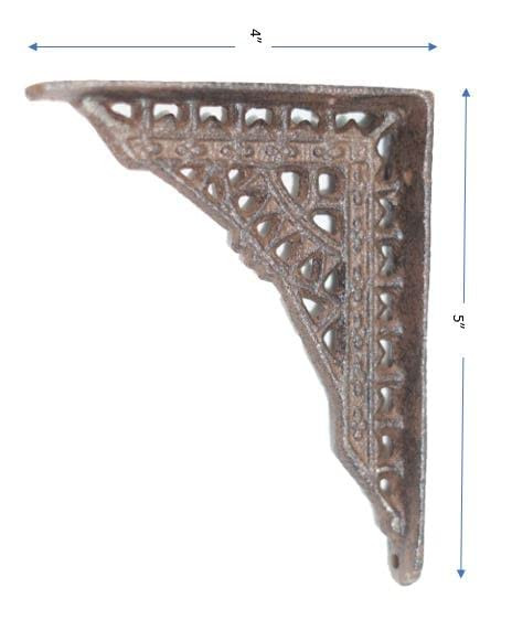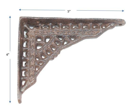 These antique-style shelf brackets are perfect for adding vintage charm! The cast iron design looks authentically aged but is brand new and sturdy. At just over 5" tall and 4" deep, they're ideal for small shelves or decor. The included black screws make installation easy. Great quality and a lovely rustic touch!