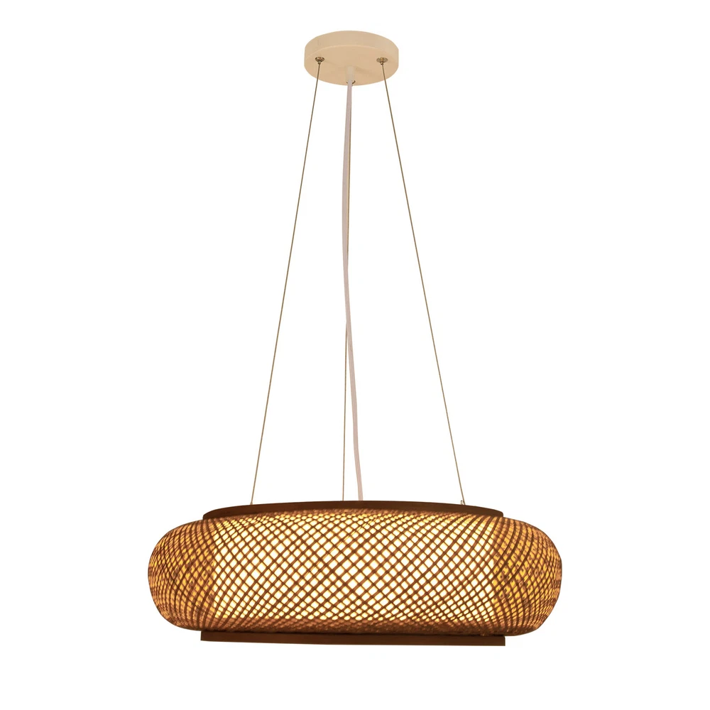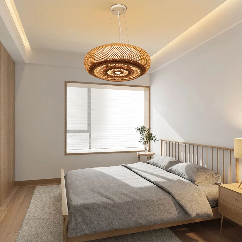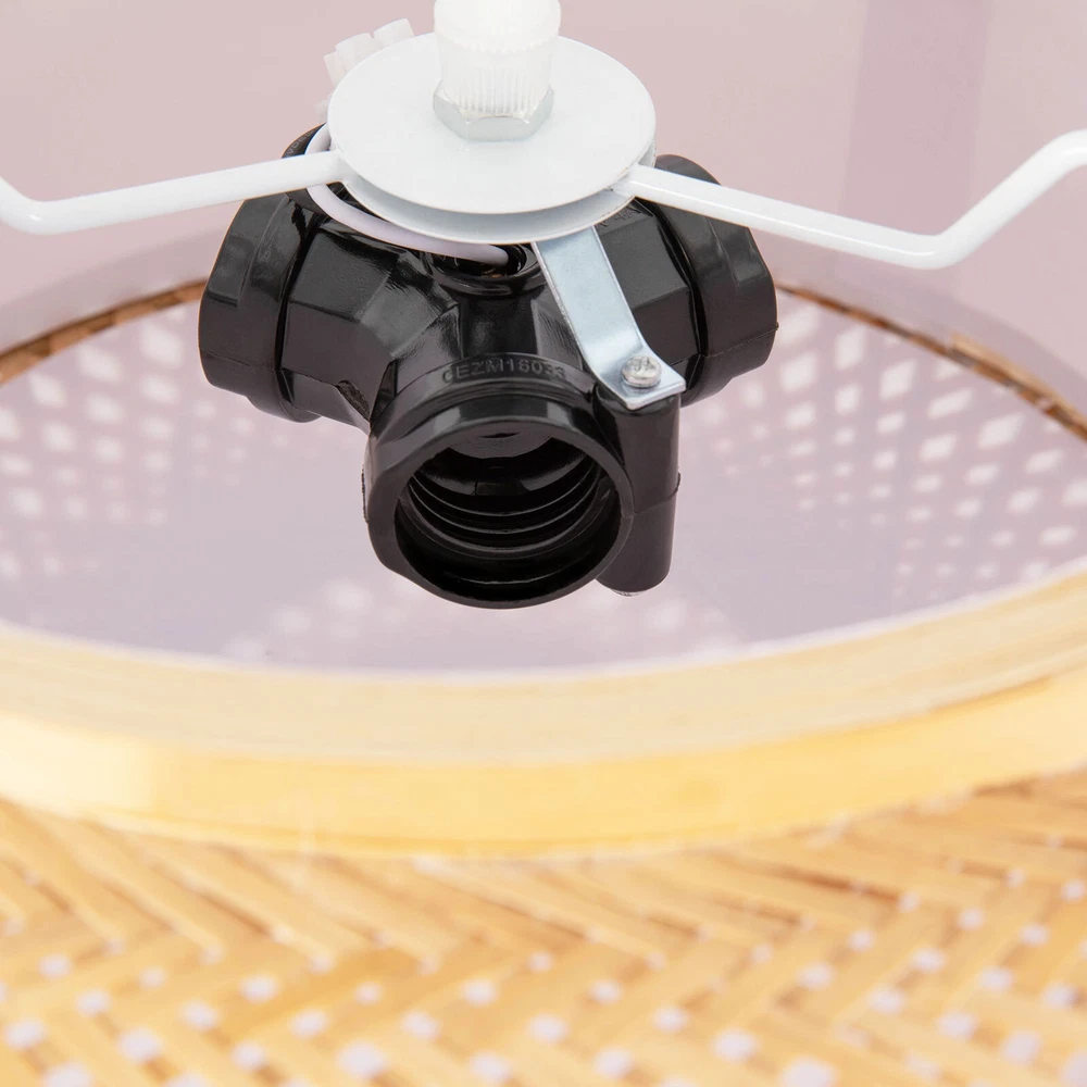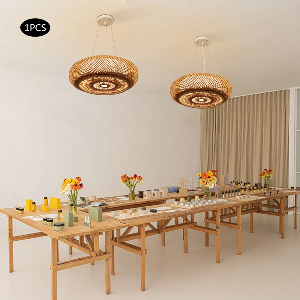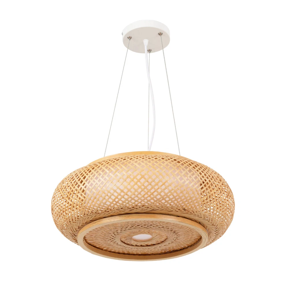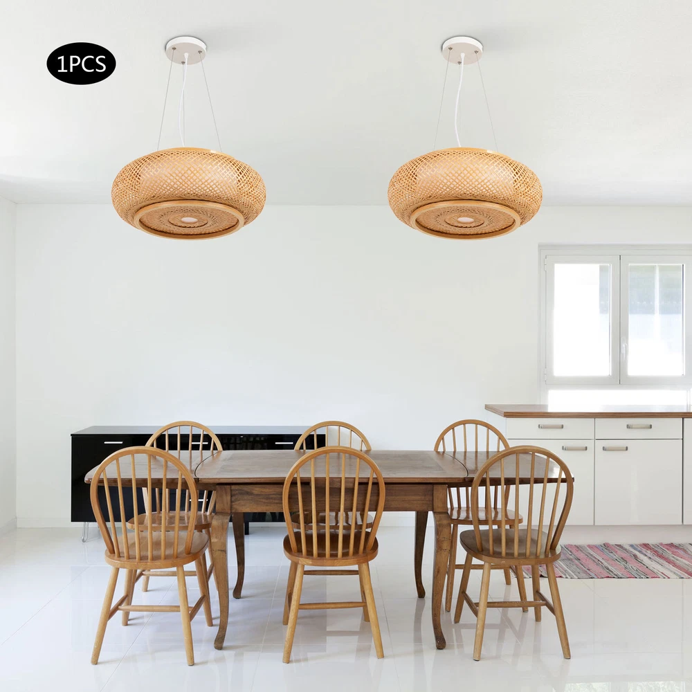 Specifications Color: Gold, Rattan Yellow Material: Bamboo, Iron, Steel Wire, Parchmyn Process: Hand-woven, Stoving Varnish Style: Vintage, Farmhouse Shape: Drum Chandelier Type: Bamboo Art Chandelier Mounting Type: Ceiling Mount Indoor/Outdoor Usage: Indoor Room Type: Bedroom, Living Room, etc. Light Direction: Down Lighting Bulb Type: LED/Incandescent/Fluorescent Light Source: 3* E26 Bulbs (Not Included) Voltage: 110V Max. Bulb Power(Each): About 60W Efficiency: E Applicable Height: Normally 3-4m/9.84-13.12ft Adjustable Height: About 1m/3.28ft Applicable Area: 10-25m²/107.6-269ft² Wire Rope Length: 1.2m/3.9ft Chassis Diameter: 10cm/3.93inch Lamp Shade Height: 12cm/4.72inch Ceiling Lamp Diameter: 50cm/19.65inch Package Included 1* Ceiling Lamp Other Access Vintage Ceiling Lamp Fixture Decor Bamboo Rattan Pendant Light Hanging Wicker US Vintage Ceiling Lighting Fixtures Drum Shape Ceiling Mount Ceiling Light Creative Decoration Art Bamboo Light Handmade Industrial Lighting for Living Room, Bedroom, Balcony 19.65inch Description This ceiling lamp mainly uses woven bamboo and iron material with exquisite processes, making it anti-rust and sturdy. Its woven bamboo shade in a drum shape with a large illuminated range(107.6-269ft² ) will be a beautiful addition to your farmhouse, living room, porch, patio, etc. You can adjust the height through the steel wire ropes to achieve the desired lighting effect. This product is compatible with LED, Edison, incandescent, and other bulb types less than 60W. Key Features Build to Last: This ceiling lamp consists of a bamboo shade and an iron chassis, together with hand-woven and stoving varnish processes, making it anti-rust, corrosion-resistant, and sturdy. Excellent Lighting Effect: Applying the white parchmyn inner lamp shade that helps to gather light well, this ceiling lamp casts soft light on the ceiling to make a beautiful lighting effect and create a warm&romantic atmosphere in your living room. Adjustable Height: With the wire rope slings design, you can adjust the overall height of the lamp within 1m/3.28ft according to the actual situation. Unique Decorative Effect: The drum-shaped woven bamboo shade with layered circle design gives the ceiling lamp a classical&retro appearance that fits industrial, vintage, rustic, and modern style homes. It plays a unique decorative role when not in use. Sturdy Structure: The sturdy round chassis of 3.93 inches in diameter, three support brackets on the shade, and strong steel wire ropes ensure stable support for the lamp body. Large Applicable Area: The item with three lamp holders can serve an area of 107.6-269ft². So you can feel the illumination over a considerable area. Easy to Install : You just need to connect the steel wire ropes on the ceiling lamp with the chassis, and then connect the wire reserved on the ceiling and the lamp chassis to install this product. Ideal Gift: Thanks to its exquisite design and classical appearance, you can choose this ceiling lamp as a gift for housewarming to your friends. Protective Package: To prevent the product from being damaged and bumped during transportation, we packed it with foam to protect your products to the maximum extent possible. Buy with Confidence: We have been working hard to provide better service and quality for our customers, which is our goal. If there is any problem with our products, please contact us in time. Details Standard E26 Bases: Equipped with three standard E26 lamp holders, you can choose different style bulbs less than 60W such as LED, Edison, and incandescent to create different lighting effects. Semi-enclosed Bottom Opening: The semi-enclosed bottom opening allows for convenient installation or change of the bulbs. Application It is ideal for small to medium-sized spaces with low ceilings, such as farmhouses, kitchens, hallways, living rooms, bedrooms, balconies, lofts, aisles, foyers, corridors, cafes, bars, restaurants, dining rooms, tearooms, and patios. And its applicable area is 107.6-269ft², and the normally applicable height is 9.84-13.12ft. Specifications Color: Gold, Rattan Yellow Material: Bamboo, Iron, Steel Wire, Parchmyn Process: Hand-woven, Stoving Varnish Style: Vintage, Farmhouse Shape: Drum Chandelier Type: Bamboo Art Chandelier Mounting Type: Ceiling Mount Indoor/Outdoor Usage: Indoor Room Type: Bedroom, Living Room, etc. Light Direction: Down Lighting Bulb Type: LED/Incandescent/Fluorescent Light Source: 3* E26 Bulbs (Not Included) Voltage: 110V Max. Bulb Power(Each): About 60W Efficiency: E Applicable Height: Normally 3-4m/9.84-13.12ft Adjustable Height: About 1m/3.28ft Applicable Area: 10-25m²/107.6-269ft² Wire Rope Length: 1.2m/3.9ft Chassis Diameter: 10cm/3.93inch Lamp Shade Height: 12cm/4.72inch Ceiling Lamp Diameter: 50cm/19.65inch Package Included 1* Ceiling Lamp Other Accessories for Installation Notes Please check the product size before ordering to make sure it fits your room. This package does not include bulbs. Be careful not to pull the wires when unpacking, it may cause a poor connection. Please do not connect wires until the lights are fully assembled. Before installing the lamp, please check if the structure is firm and if the whole bulb is coordinated. For a safe and secure installation, please ensure that the electrical base to which this fixture will be mounted is properly attached to a structural member of the building. And please do not touch the bulb when replacing the bulb. This product is compatible with most junction boxes but must be hardwired. Please make sure the power is cut off before installation and when you clean the light. To ensure your safety, we recommend that two people install this ceiling lamp together. The surface of the product and the electric wire should avoid scratching when mounting, and electric insulation gloves(not included) must be worn when installing. Please install it by someone with an electrical license if necessary. During the cleaning and maintenanc