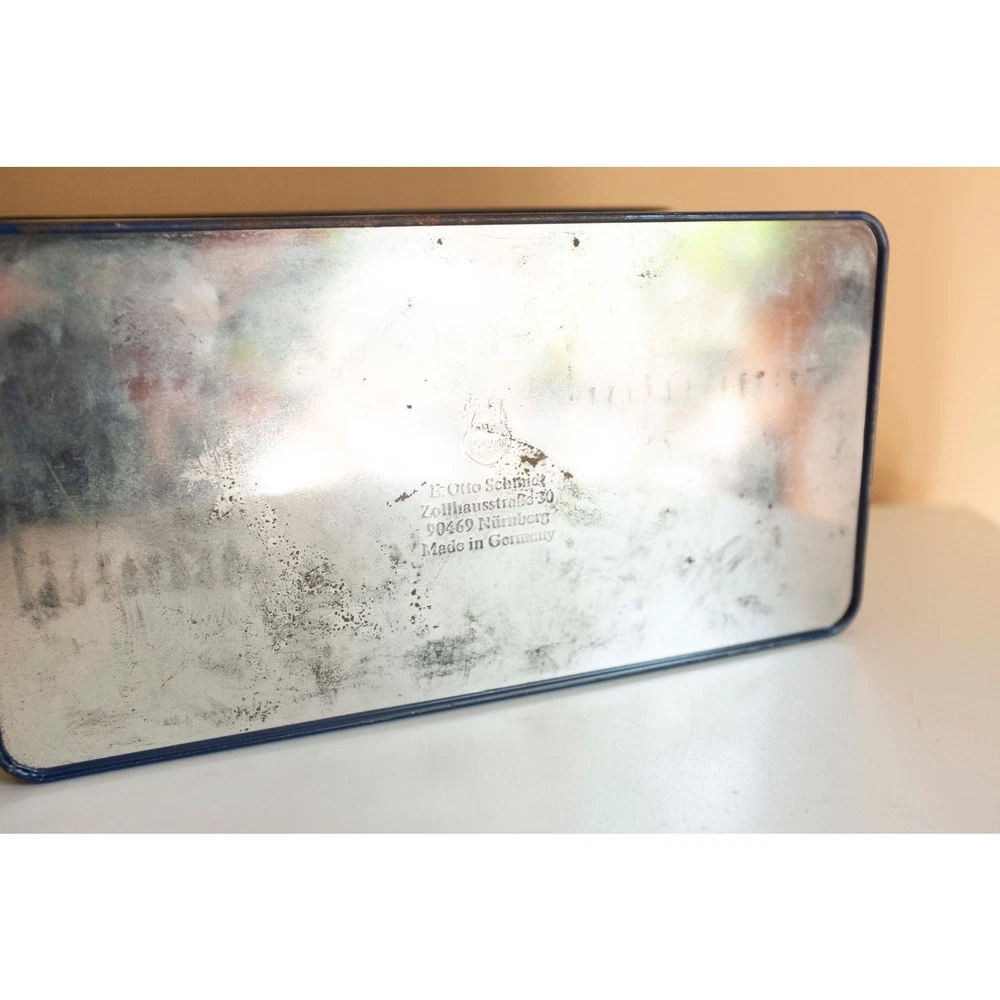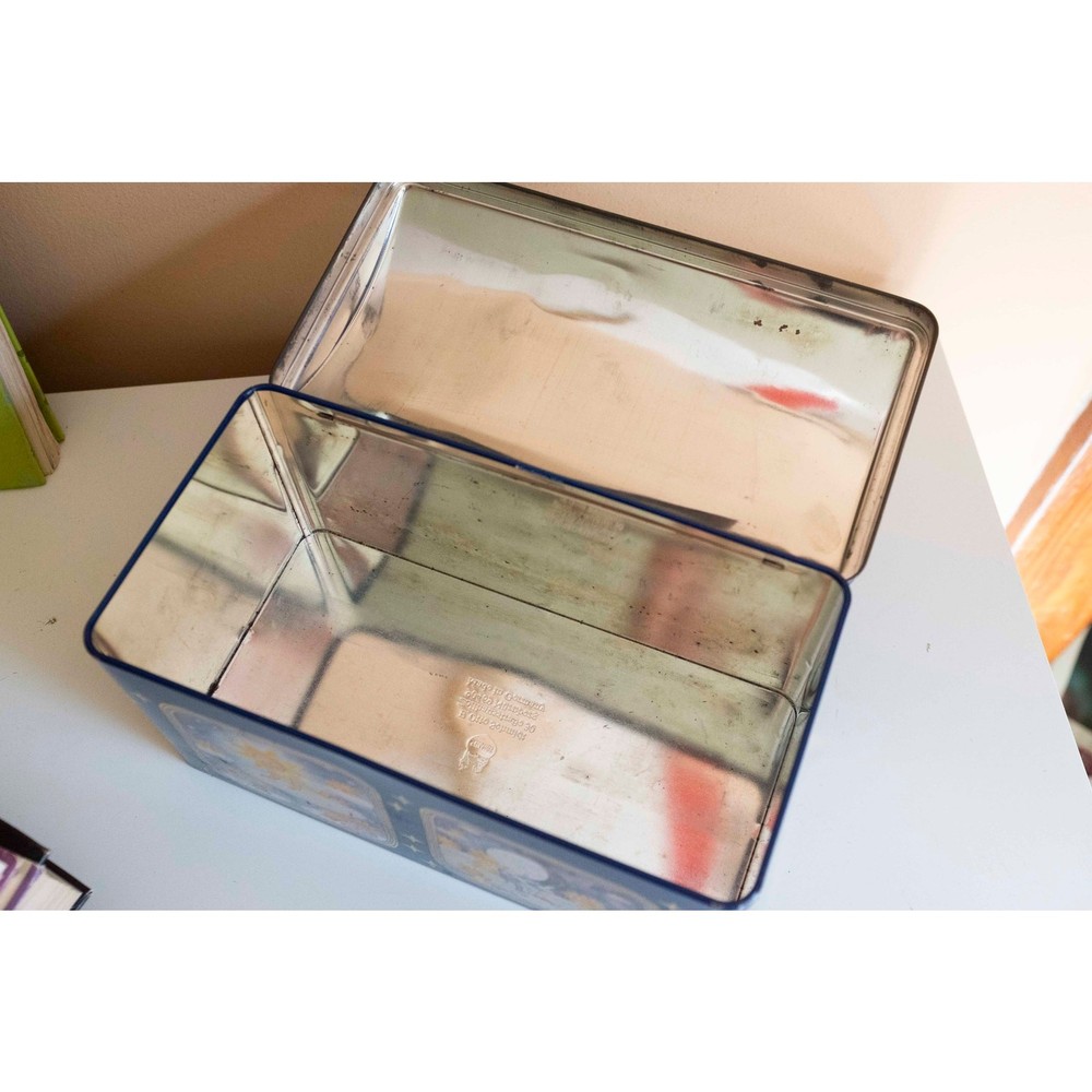 The sweetest celestial tin! Schmidt, made in Germany. This vintage tin is on the larger side, making it perfect for storage. Measures approximately 10" x 5.25" x 5.75". Overall in good condition, with some patina and a slightly flattened top, which only adds to its vintage charm. Thanks for supporting my small business. Items are all vintage, meaning that they’ve been owned and loved previously, and most items will show signs of use. I examine items closely and note anything that might be a defect. Items are priced accordingly. I use recycled packing materials to keep my prices low and to lessen my business’s environmental impact.
