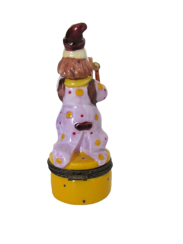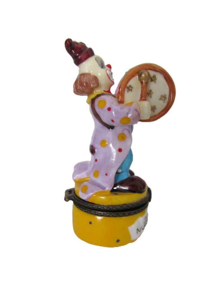 Ceramic 3.75-inch tall Clown Playing Drum Hinged Trinket Box Vintage No chips or cracks Please browse our store for more great items. We will gladly combine shipping.