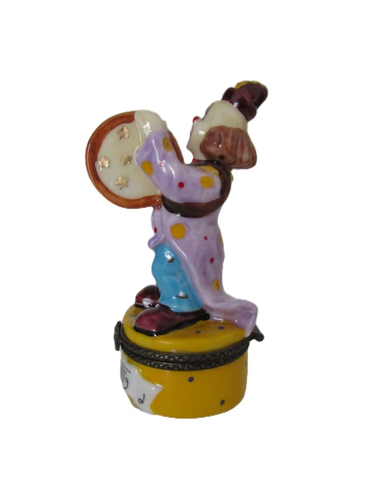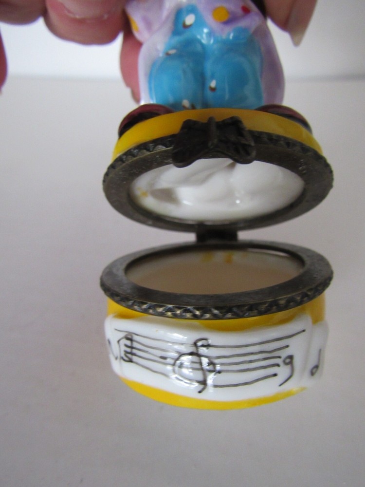 Vintage Ceramic 3.75 Inch Clown Drum Hinged Trinket Box