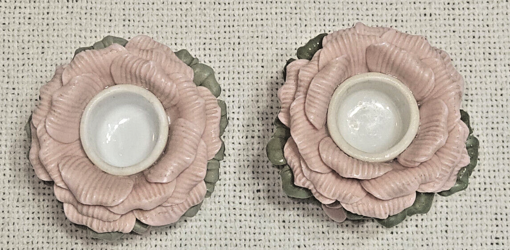 Size: Small Room: Any Room Era: Late 20th Century (1970-1999) Style: 1960s Material: Porcelain UPC: N/A Country/Region of Manufacture: Unknown Subject: Flower Pattern: Floral Engraved: No Shape: Bloom Features: Flowers Theme: Floral Packaging: Unboxed Item Height: 3 in Finish: Glazed Item Width: 3 in Seller Notes: “Excellent” Color: Multicolor Brand: Unbranded Time Period Manufactured: 1960-1969 Number in Pack: 2 Care Instructions: Clean with Damp Cloth Department: Adults Original/Reproduction: Original Occasion: All Occasions Item Length: 3 in. gtin13: N/A Type: Candle Holder Antique: No