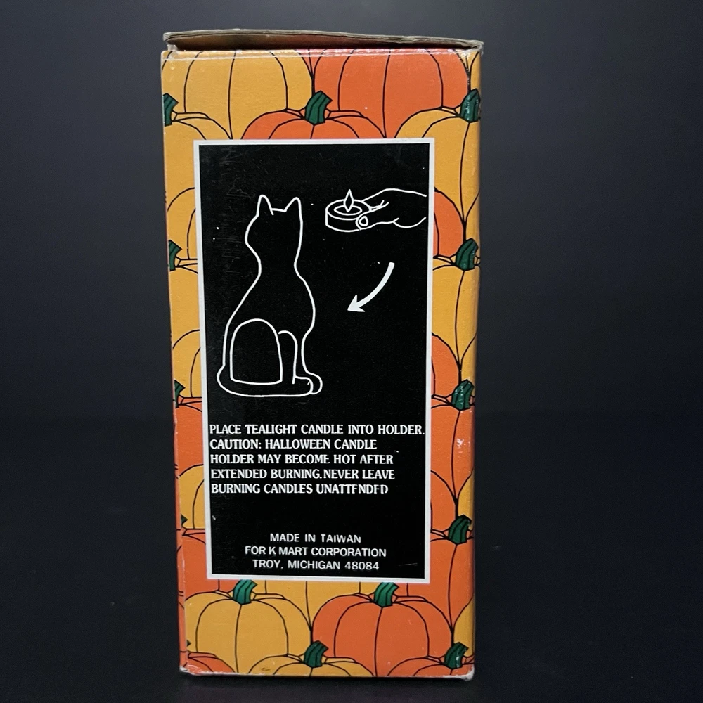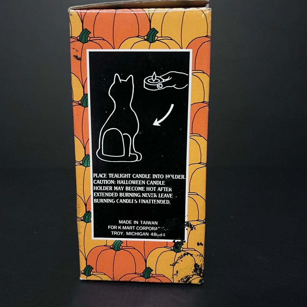 Thank you for shopping at Raven's Resale Vintage Kmart black cat and jack o lantern pumpkin votive New open box Only placed an led candle for photo purposes. Sticker removed from the bottom. Measurements taken at widest point: •Height-5.5 inches •Width-3.5 inches •Length-3.5 inches