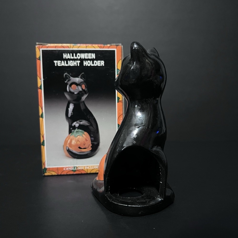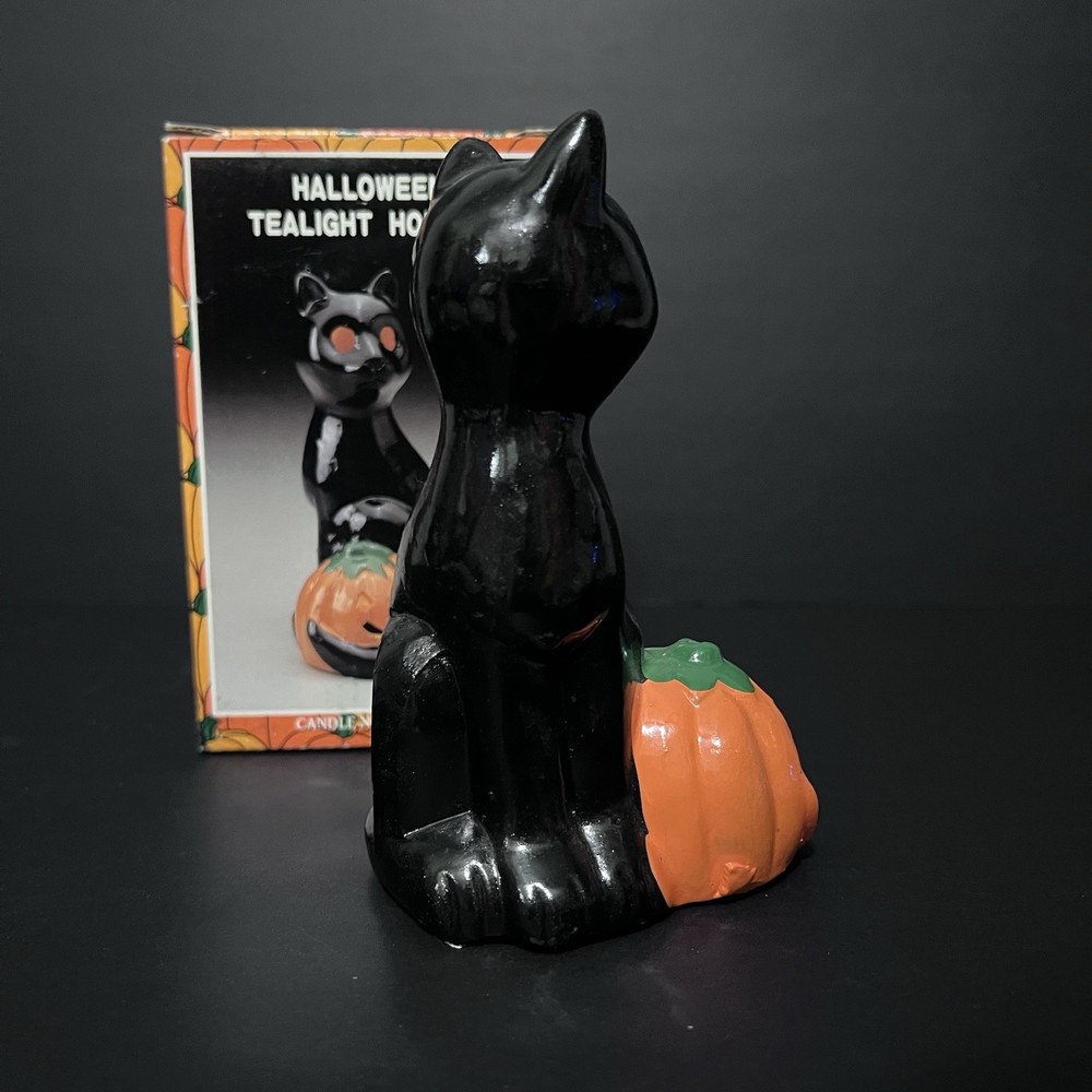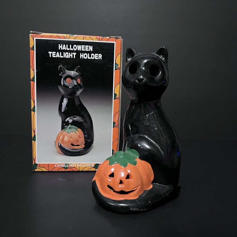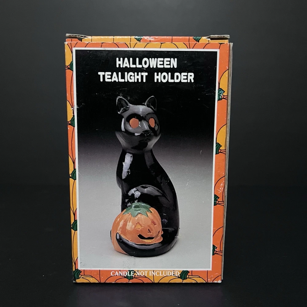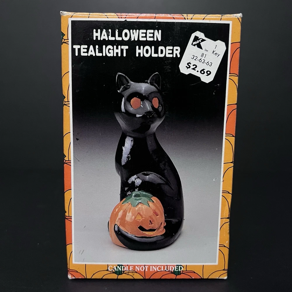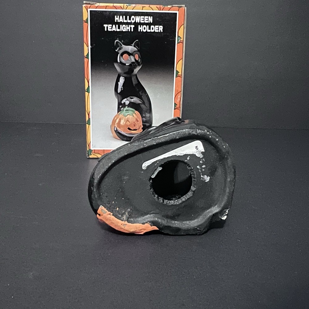 Vintage Ceramic Kmart Halloween Tea Light Candle Holder Witch Black Cat Pumpkin