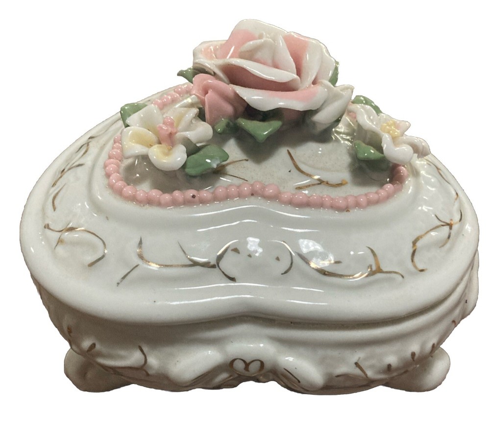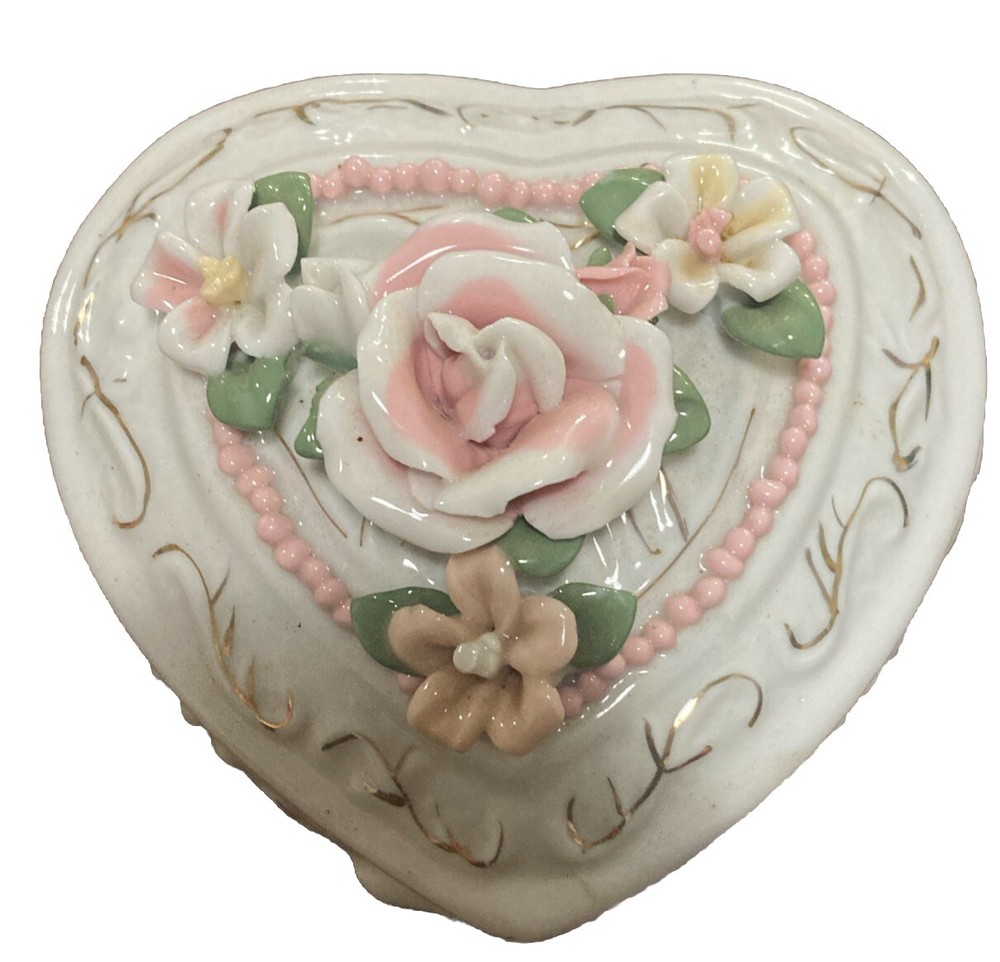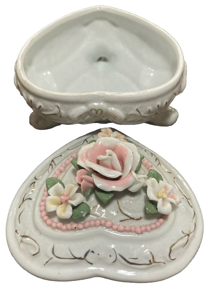 Subject: Boxing Shape: Heart Features: Boxed Material: Ceramic Type: Trinket Box Brand: Unbranded Pattern: Roses