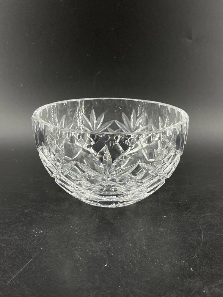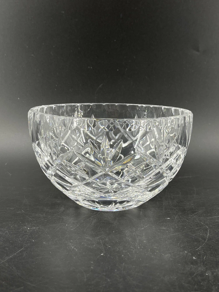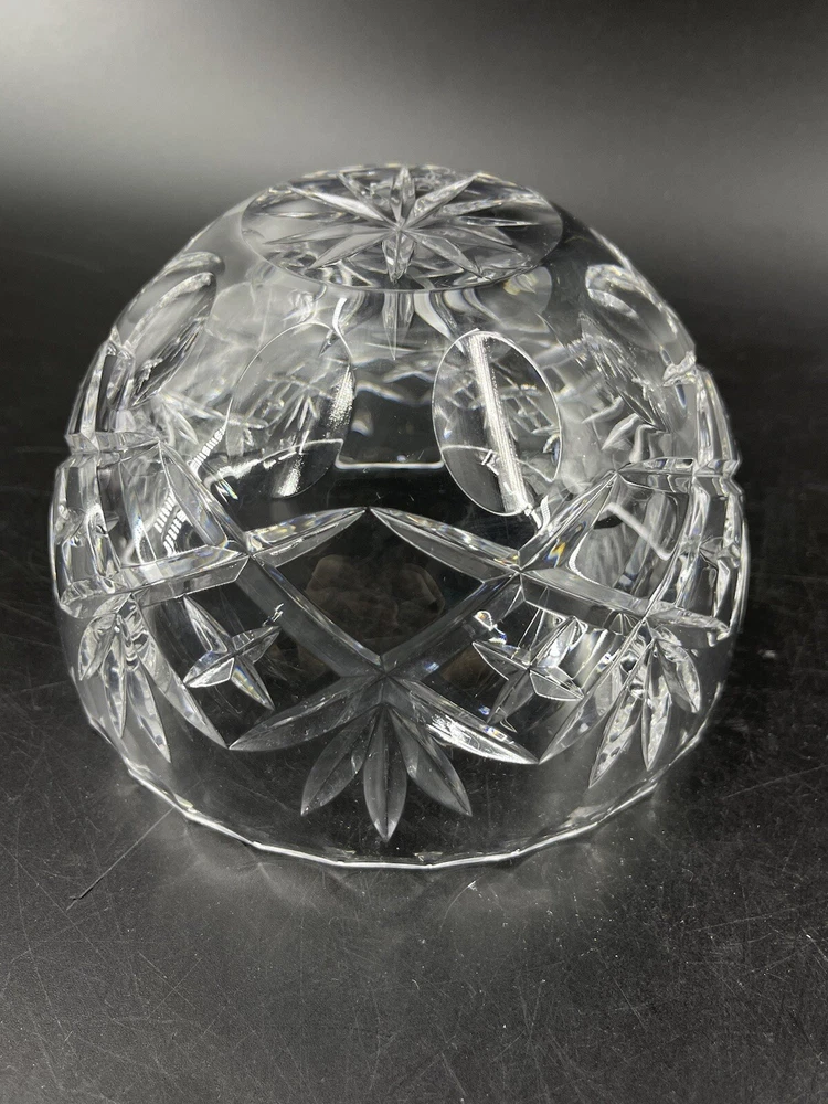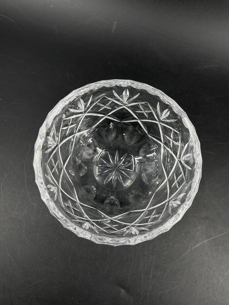 Vintage Cexkci Ceska Czech Hand Cut Crystal Bowl Diamond Stars Fans Pattern 5.75 5 3/4" diameter and 3 1/2" deep. Acid etched signed on bottom.