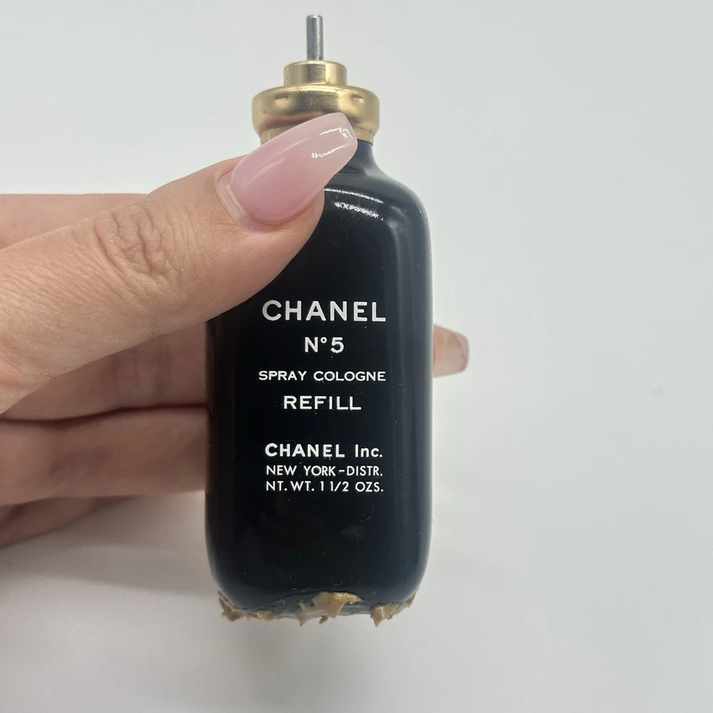 Vintage CHANEL No. 5 Spray Refillable Perfume Case Bottle – 1.5 oz Black Spray Cologne Bottle Inside Up for sale is a vintage CHANEL No. 5 refillable spray perfume case , featuring a sleek black design and a 1.5 oz cologne spray bottle inside. The inner spray bottle is affixed to the case with a tan adhesive that resembles peanut butter. The bottle is not translucent , so it's difficult to determine exactly how much perfume remains, but it does sound like there's some liquid inside when shaken. Condition: Pre-owned vintage item Adhesive visible where the bottle is attached inside the case Some perfume appears to remain, but amount is unknown Outer case and sprayer show signs of age and storage Please review all photos carefully for details and condition. Important Shipping Note: Due to the perfume content, this item must be shipped via ground transportation only , in accordance with regulations for shipping hazardous materials. Delivery may take longer than the estimated time shown by eBay.
