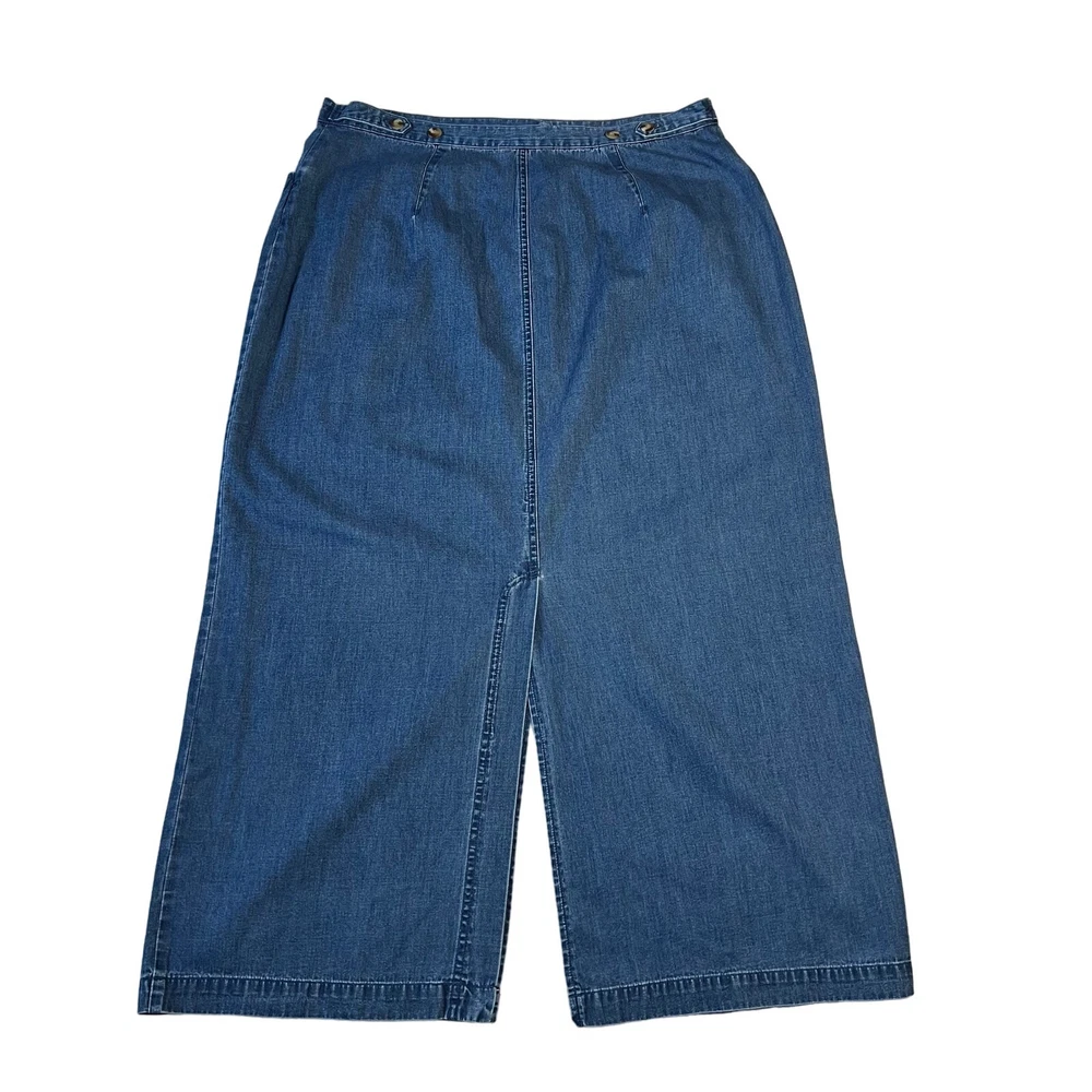 Vintage Charter Club Lightweight Denim Maxi Skirt with slits Size 16 Western CONDITION: Pre-Owned. Gently Used Condition. FLAWS/ALTERATIONS: There is one small snag on the skirt. There are two tiny tears near the opening of the slits on the front and back of the skirt. Please see the last pictures. COLOR: Blue SIZE: Women’s Size 16 DETAILS: Maxi length Woven, no stretch Front and back slits Button closure, zipper fly Front pockets Lightweight denim Fitted skirt MEASUREMENTS: Waist: 17.5" Full Length: 37" **All measurements are approximate and are taken flat** MATERIAL: 100% Cotton Bundle 2 OR MORE items to save more! Reasonable offers are welcomed! TAGS: Casual Comfy Spring Summer Fall Contemporary Minimalist Trendy Y2K 90s 2000s Western Rodeo Cowgirl Cowboy Equestrian Southwestern Classic Staple Preppy Hipster Plus Size Curvy