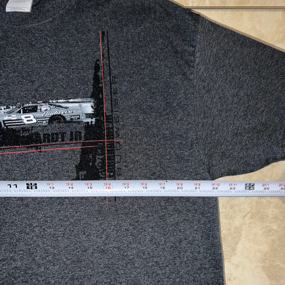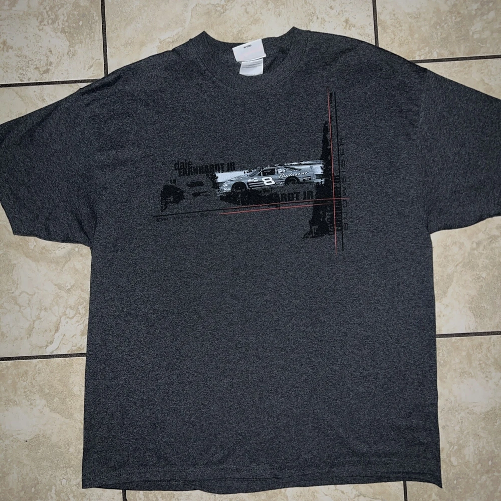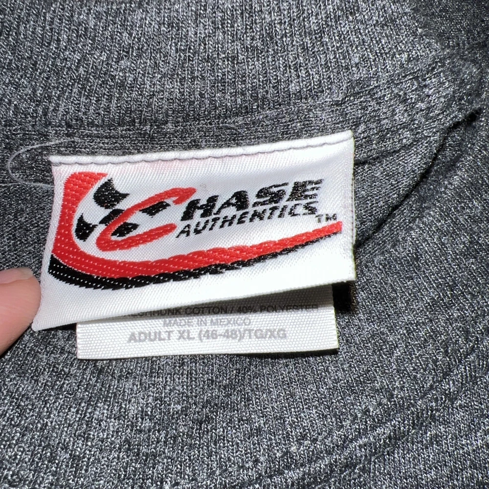 This vintage Chase Authentics Dale Earnhardt Jr. Nascar racing t-shirt in size XL is a must-have for any fan of auto racing. The black unisex shirt features the iconic driver and is perfect for any occasion. Made for fans of Nascar and auto racing, this shirt is an excellent addition to any collection. The shirt is made of high-quality materials and is designed to last. Get your hands on this rare item before it's gone! The stitching on the bottom of the tee seems to be slightly undone half way as seen in photos.