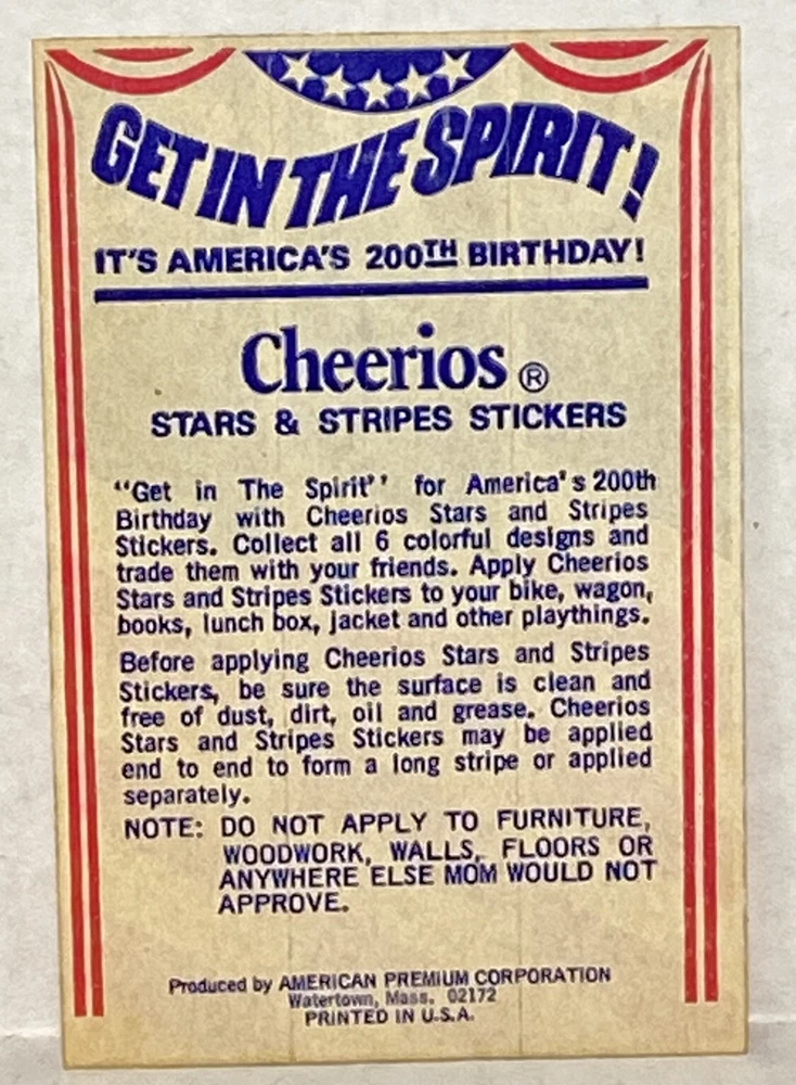 HomeVintage Cheerios Stickers Stars And Stripes 1976 Red White Blue Patriotic