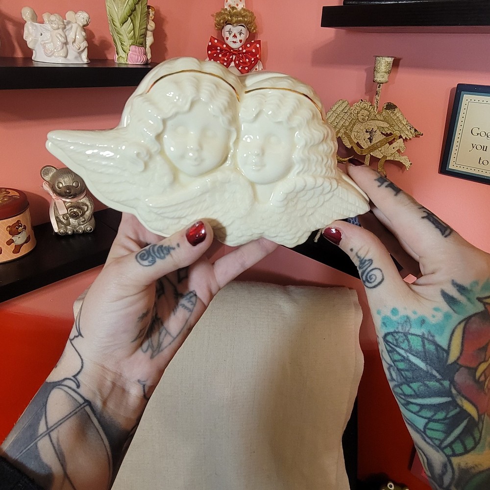 Brand: Unbranded Color: White Style: Victorian Type: Trinket Box Finish: Glossy Subject: Cherub Features: With Lid Material: Porcelain Size: Medium