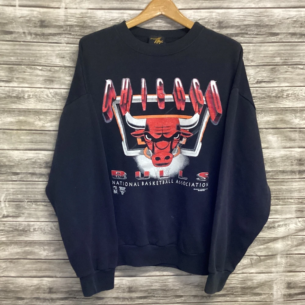 Vintage Chicago Bulls Sweatshirt Mens XL Black Pure Magic Johnson NBA Basketball Brand: Pure Magic Johnson Size: Mens XL (Chest "24.5 / Length "27.5) Condition: Pre-Owned / Good Used condition with minor signs of ware, please see photos for any specific defects or details worth noting. If item is used the item will be washed and inspected before listed. Items are stored in a smoke and pet free environment. We offer combined shipping discounts on multiple item orders. Any questions feel free to DM me thanks!!!