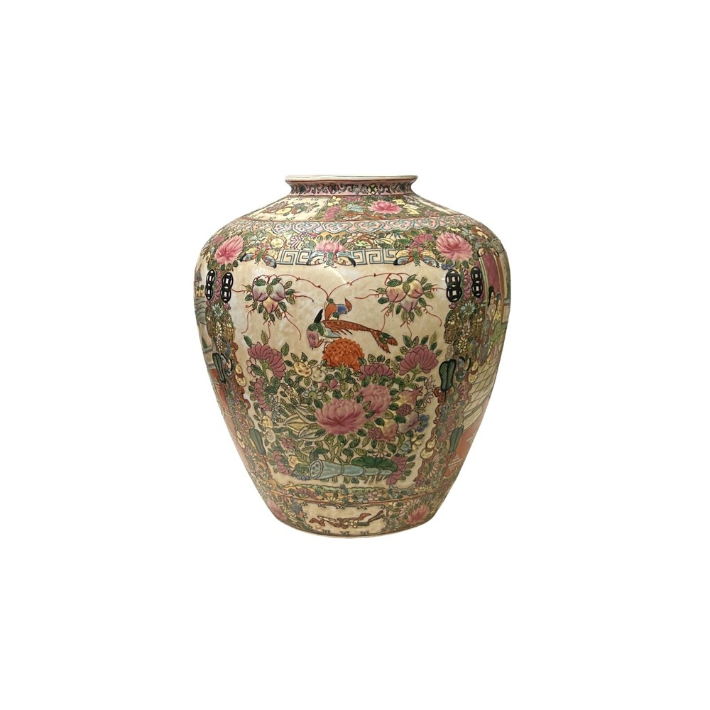 Vintage Chinese Famille Rose People Scenery Oval Round Porcelain Vase JK194 DESCRIPTION This exquisite Chinese porcelain vase jar presents a captivating glimpse into traditional artistry. Its rounded, slightly tapered form, is adorned with a meticulously hand-painted scene depicting figures engaged in various activities within a serene landscape. The warm, creamy background serves as a canvas for the vibrant colors of the figures' robes, the lush green foliage, and the tranquil blue of the water. The intricate details of the people, the architectural elements, and the surrounding natural scenery showcase the skill and precision of the artisan. The jar's elegant design and rich cultural motif make it a striking decorative piece, embodying the timeless beauty of Chinese porcelain. Dimensions: Dia 11" x h12" Origin: China Material: Ceramic Condition: Hand-made, no crack, good condition.- vintage marks USA domestic continental buyers of 48 states pay $60 shipping (buyers of Hawaii, Alaska, US Islands, Florida Keywest, and Canada pay the extra shipping cost). Insurance and handling charges are already included in the shipping cost. In store pick up is highly welcomed if you are in San Francisco Bay Area. (No charge) Shipping Payment Return Contact Us Shipping Payment Return Contact Us US domestic continental buyer of 48 states pays listed shipping charge. Buyers of Hawaii, Alaska, US Islands, Florida Keywest, and Canada pays the extra shipping cost). Insurance and handling charges are already included in the shipping cost. In store pick up is highly welcomed if you are in San Francisco Bay Area. (No charge) - We are now shipping to worldwide addresses, the item is sent to a logistic center in KY and shipped from there to the rest of the world - International customers are responsible for all duties and taxes - Contact your local authority for questions related to the amount of duties or taxes you will be responsible for - We ship within five business days of payment, usually sooner We accept Paypal and all major credit card (Visa, Master, American Express and Discover) For internatinal customer, the easiest way is to pay by Paypal, we will only ship to Paypal comfimed address. - In the event that you would like to return your purchase, we allow returns that are processed within the defined return date (the return date is to be found in the return policy/shipping and handling section). - Please contact us for a return authorization and the return shipping address. - We advise you to use a reputable courier service when returning your goods. Please pack all returns appropriately. - Customer May be responsible for round trip shipping. Damage Claim: Customer is responsible to report any damage within 7 days after receiving the item. Please take photos for record and send to us. All packing material should be kept for damage claim. We will not be responsible for any damage cost if the demage claim cannot be filed to the insurance company due to customer mistake " did not keep the original packaging material and box" If you have any question, please contact us via ebay. We usually respond within 10 min during office hour. Monday ~ Sunday (7days 10.00 am till 6.00 pm). See our other items See our other items This exquisite Chinese porcelain vase jar presents a captivating glimpse into traditional artistry. Its rounded, slightly tapered form, is adorned with a meticulously hand-painted scene depicting figures engaged in various activities within a serene landscape. The warm, creamy background serves as a canvas for the vibrant colors of the figures' robes, the lush green foliage, and the tranquil blue of the water. The intricate details of the people, the architectural elements, and the surrounding natural scenery showcase the skill and precision of the artisan. The jar's elegant design and rich cultural motif make it a striking decorative piece, embodying the timeless beauty of Chinese porcelain. Dimensions: Dia 11" x h12" Origin: China Material: Ceramic Condition: Hand-made, no crack, good condition.- vintage marks USA domestic continental buyers of 48 states pay $60 shipping (buyers of Hawaii, Alaska, US Islands, Florida Keywest, and Canada pay the extra shipping cost). Insurance and handling charges are already included in the shipping cost. In store pick up is highly welcomed if you are in San Francisco Bay Area. (No charge) Vintage Chinese Famille Rose People Scenery Oval Round Porcelain Vase JK194 DESCRIPTION This exquisite Chinese porcelain vase jar presents a captivating glimpse into traditional artistry. Its rounded, slightly tapered form, is adorned with a meticulously hand-painted scene depicting figures engaged in various activities within a serene landscape. The warm, creamy background serves as a canvas for the vibrant colors of the figures' robes, the lush green foliage, and the tranquil blue of the water. The intricate details of the people, the architectural elements, and the surrounding natural scenery showcase the skill and precision of the artisan. The jar's elegant design and rich cultural motif make it a striking decorative piece, embodying the timeless beauty of Chinese porcelain. Dimensions: Dia 11" x h12" Origin: China Material: Ceramic Condition: Hand-made, no crack, good condition.- vintage marks USA domestic continental buyers of 48 states pay $60 shipping (buyers of Hawaii, Alaska, US Islands, Florida Keywest, and Canada pay the extra shipping cost). Insurance and handling charges are already included in the shipping cost. In store pick up is highly welcomed if you are in San Francisco Bay Area. (No charge) Shipping US domestic continental buyer of 48 states pays listed shipping charge. Buyers of Hawaii, Alaska, US Islands, Florida Keywest, and Canada pays the extra shipping cost). Insurance and handling charges are already included in the shipping cost. In store pick up is highly welcomed if you are in San Francisco Bay Area. (No charge) - We are now shipping to worldwi