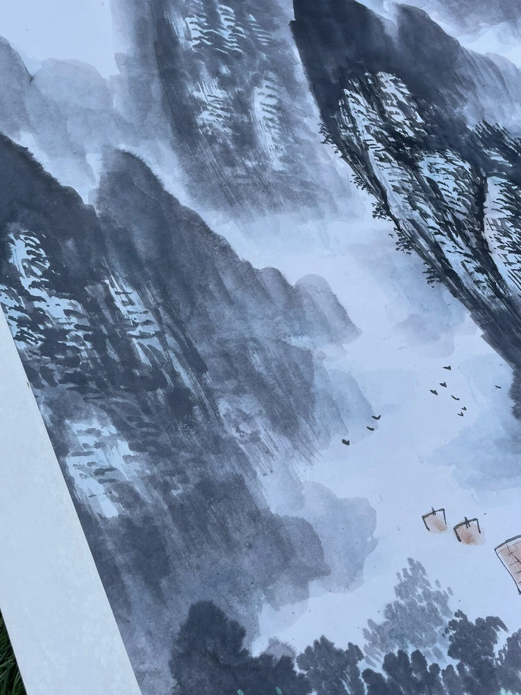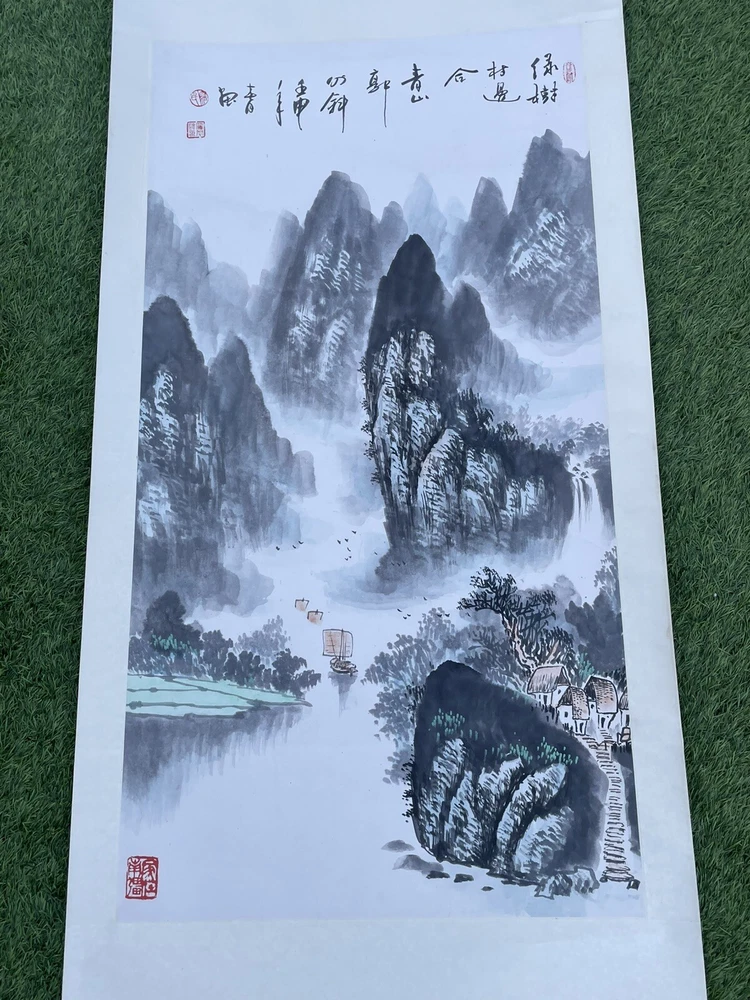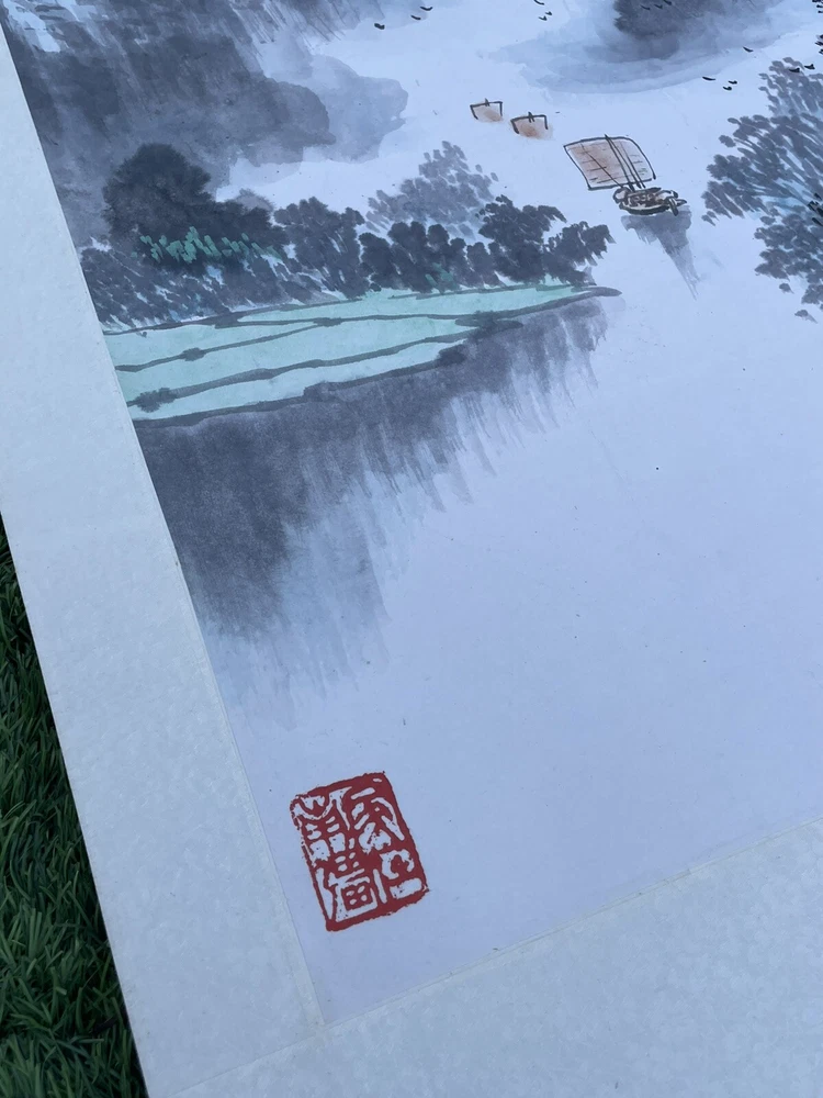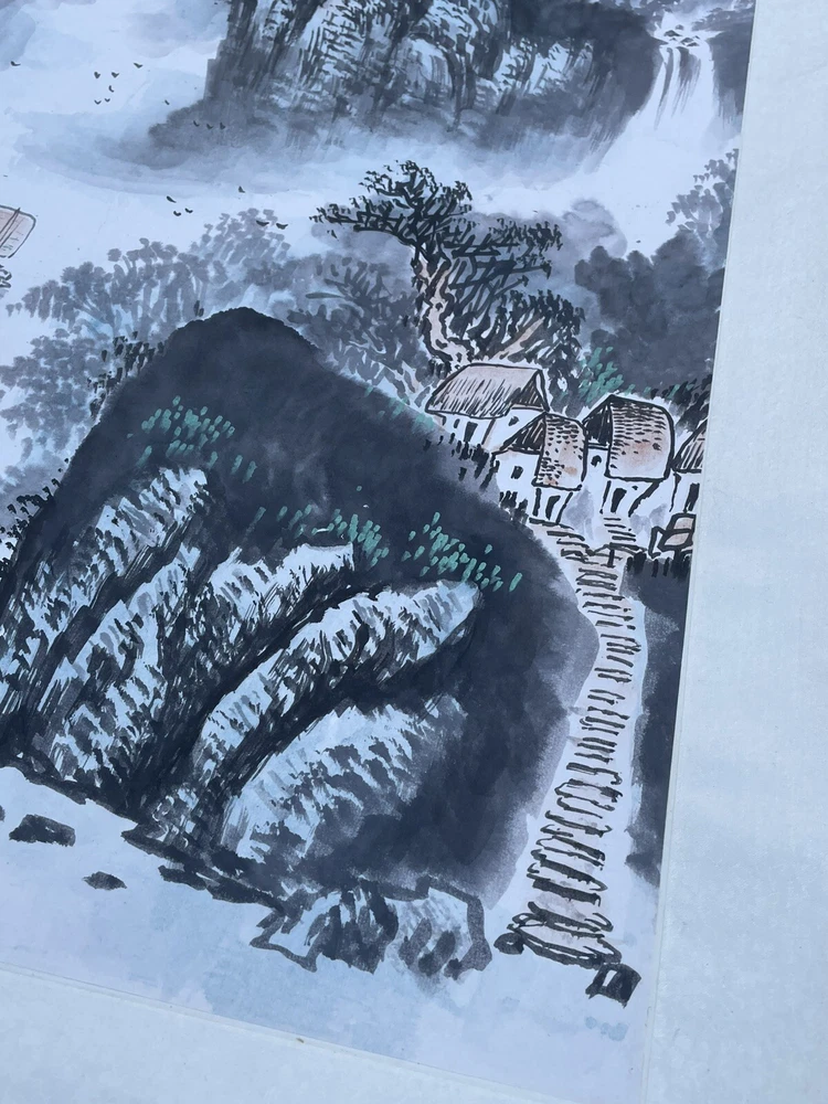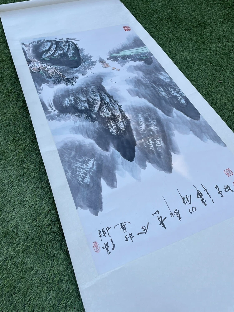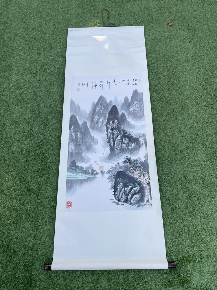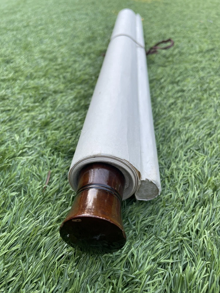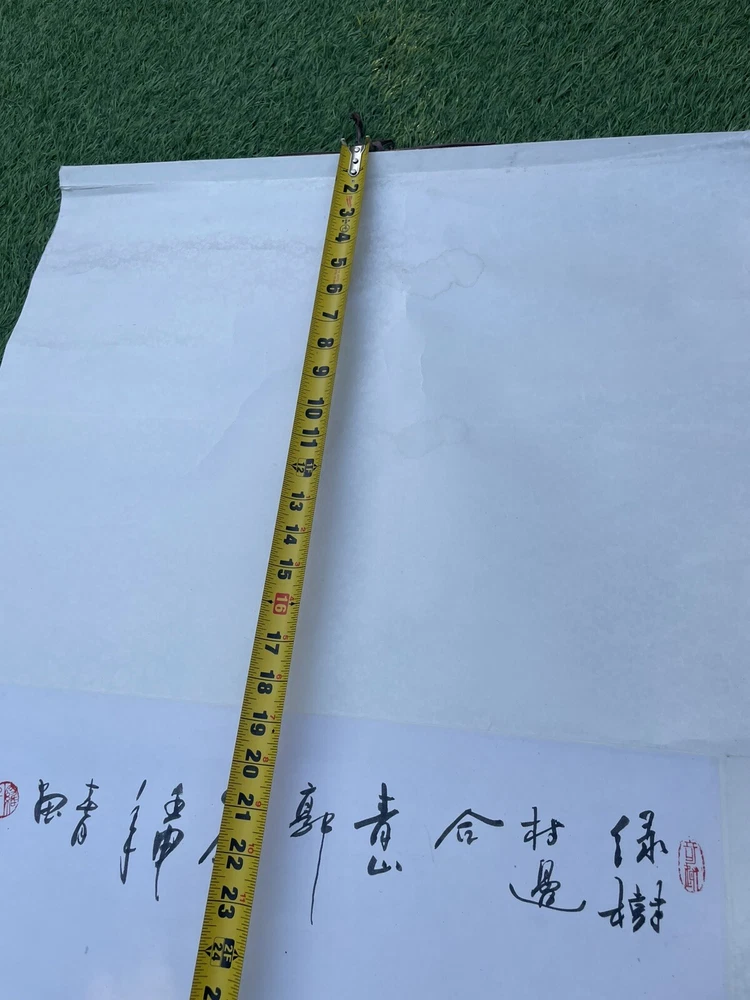 Vintage Chinese Hand Painted Watercolor Wall Hanging Scroll Painting Signed. Beautiful very large vintage/ antique water color painting. In good condition. Two small water stains near top portion. Small tear in top left side (still hangs even and looks great). 69" x 23". Wood Scroll handle is 27" wide. See pictures for further condition and measurements. You'll receive the exact item pictured.