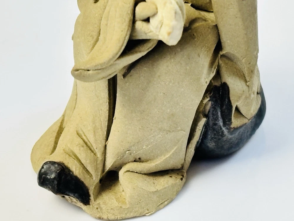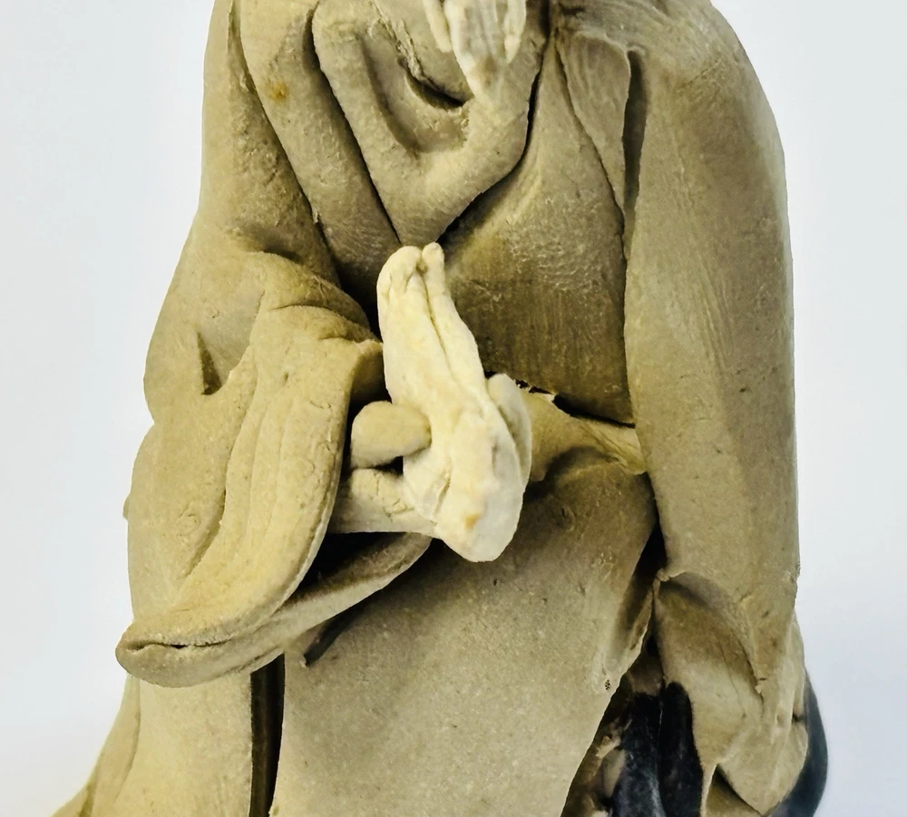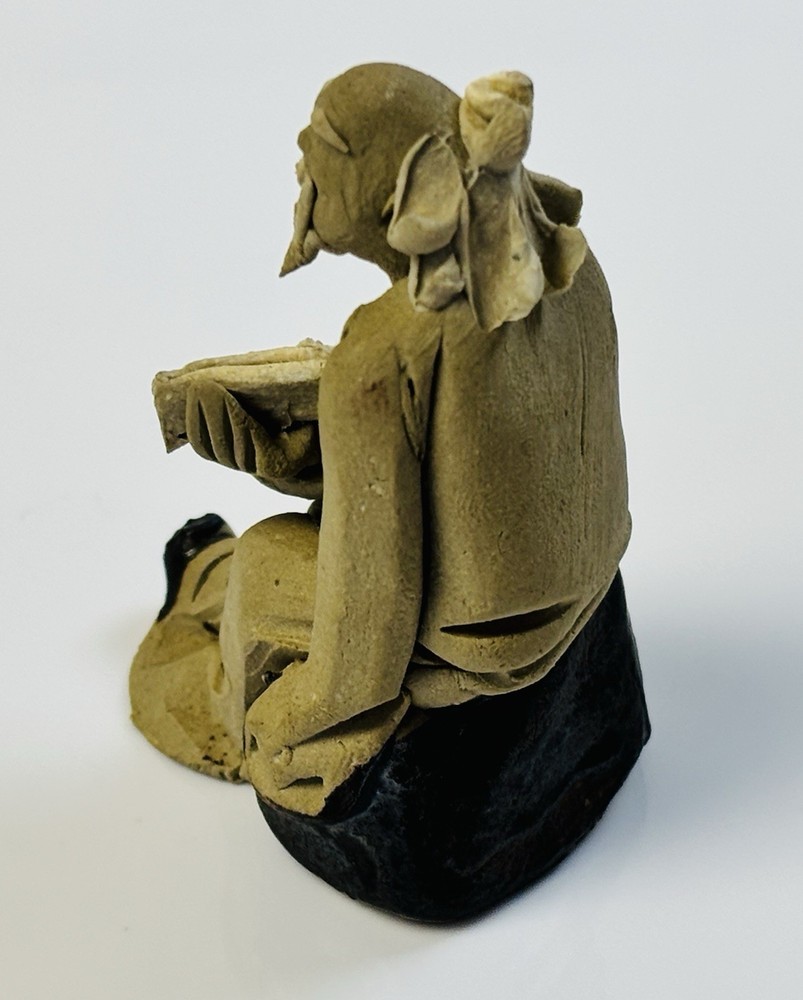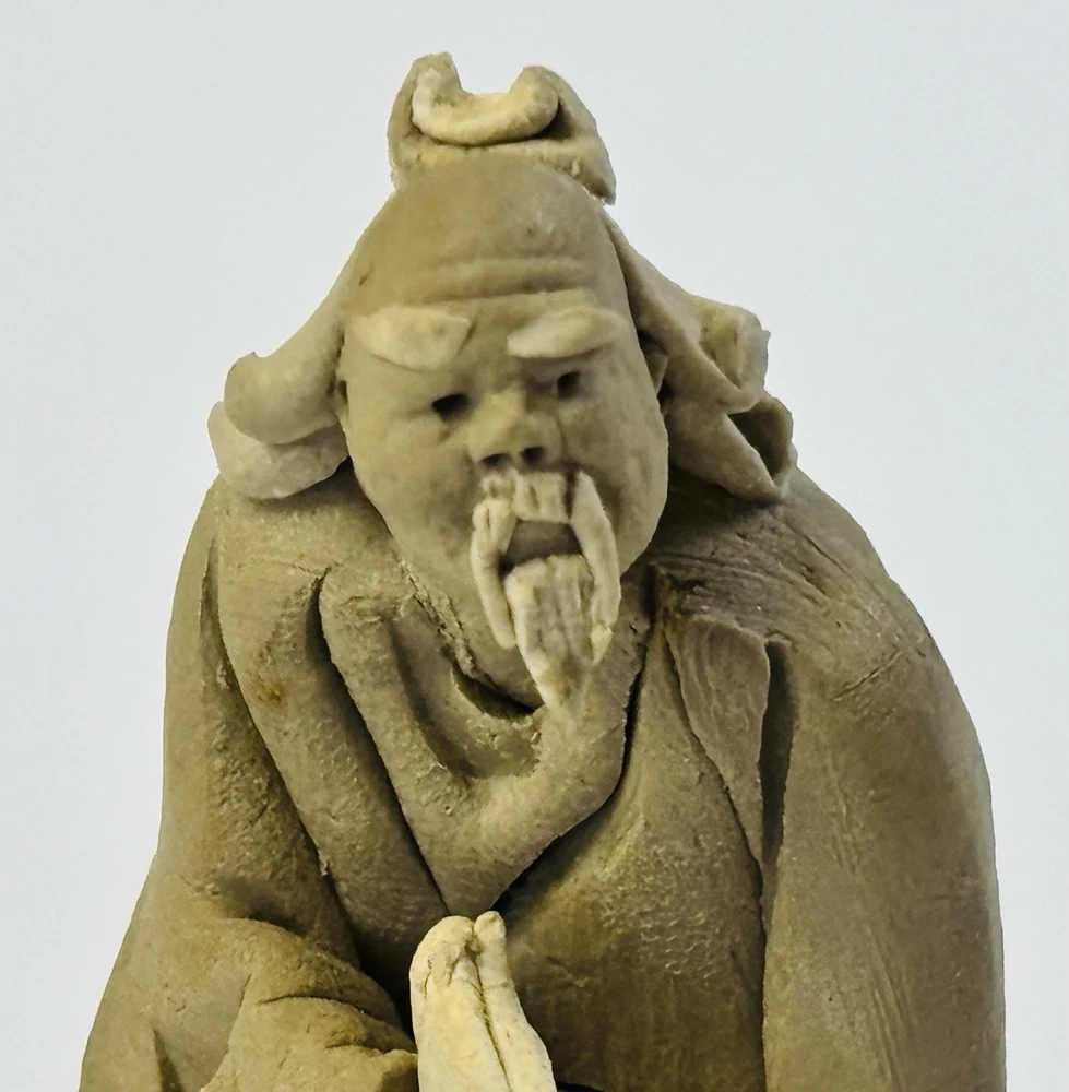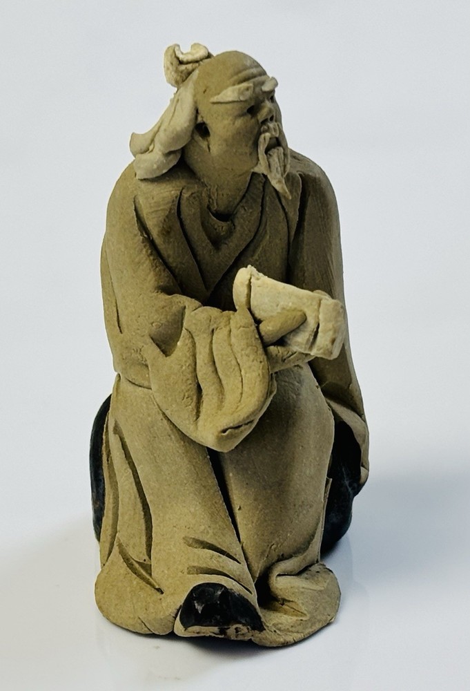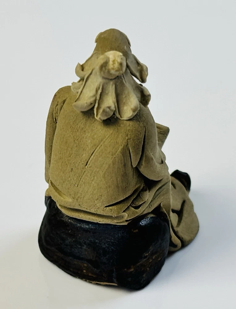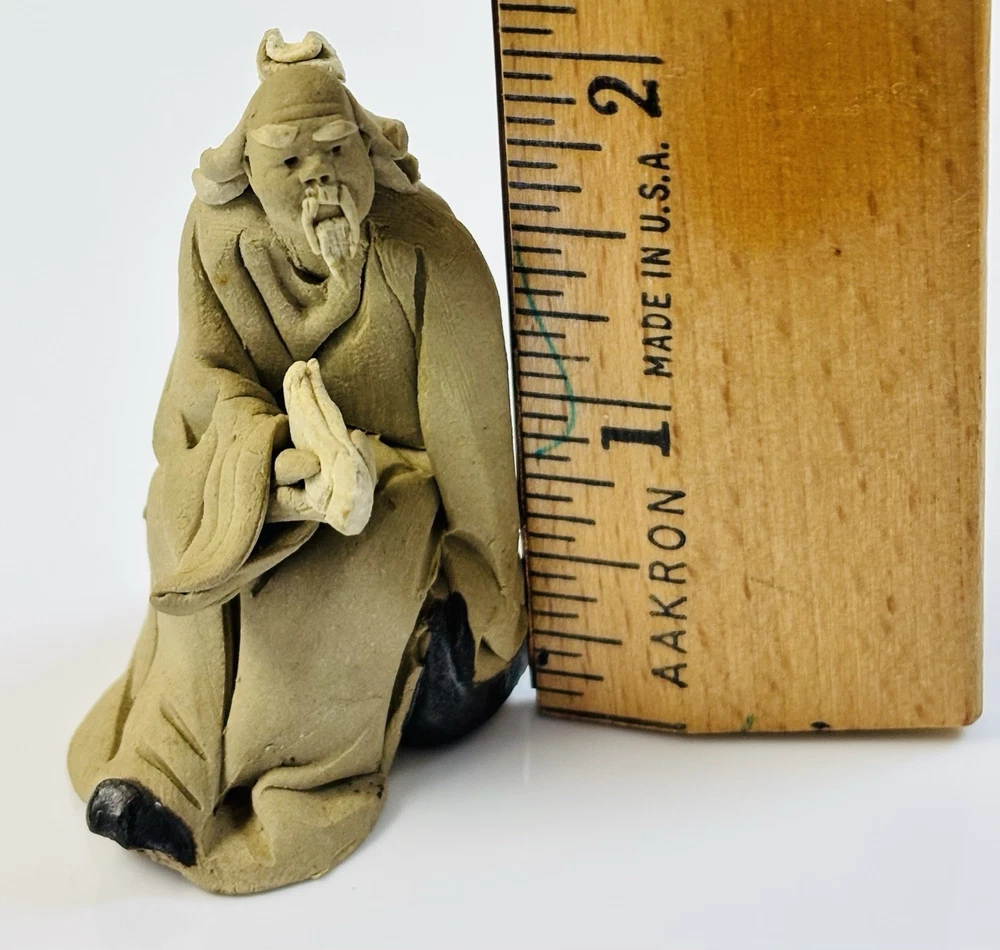Vintage Chinese Mudman Figurine – Seated Scholar – 2” Clay Sculpture •Charming vintage Chinese Mudman figurine—seated elderly scholar holding a scroll •Crafted from clay with hand-formed details and expressive facial features •Traditional robe with black glaze accents on feet and base •Stands approximately 2 inches tall •Unmarked on the base, consistent with older handmade examples •Great condition with some age-related wear and light scuffing Ideal for collectors of vintage Asian figurines, scholar-themed decor, or miniature clay art. Ships with care.