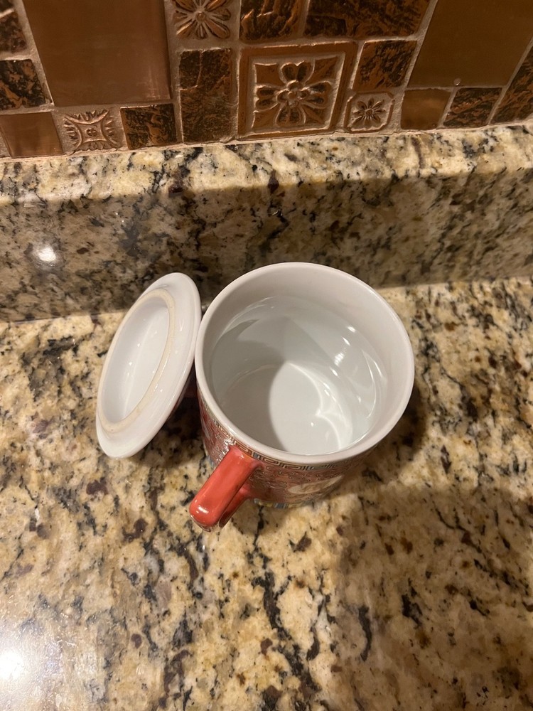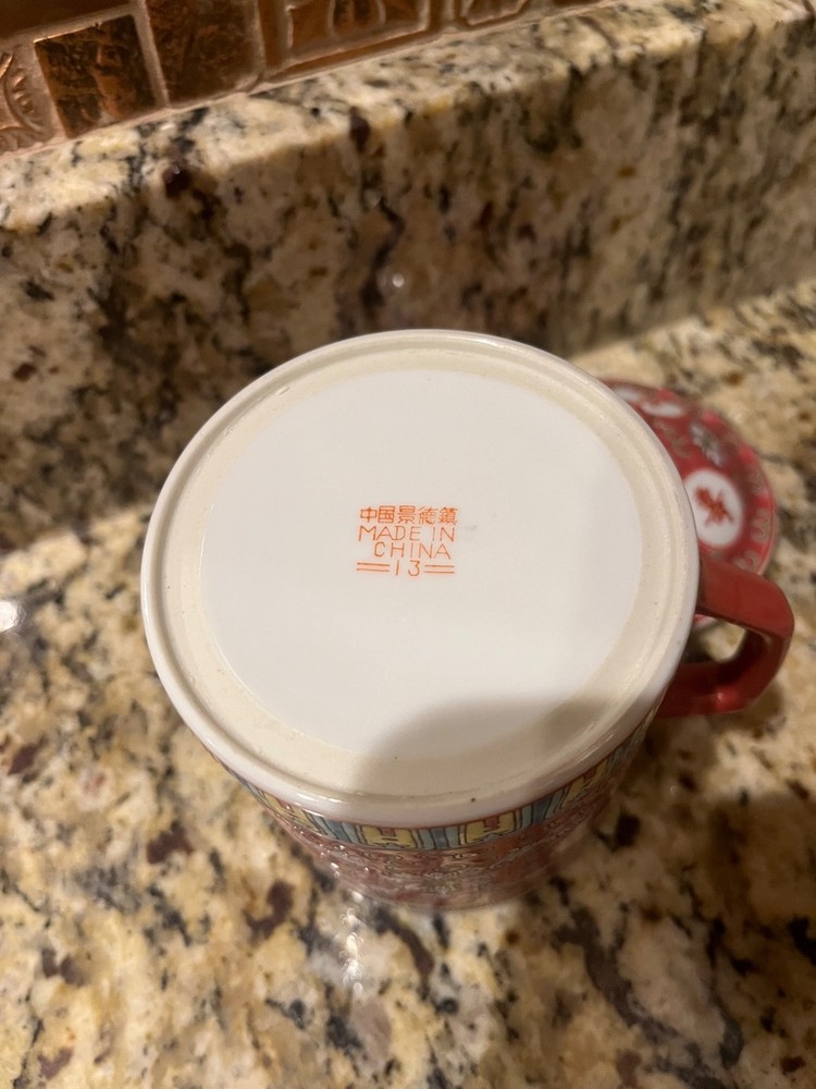 Adorn your tea time with this exquisite vintage Chinese mug and lid set. The vibrant coral red glaze serves as a stunning canvas for intricate golden and floral motifs, each element whispering tales of tradition. Imagine the comforting warmth of your favorite brew held within this beautifully crafted vessel, the delicate patterns catching the light as you sip. The secure-fitting lid promises to keep your beverage warm, allowing for moments of tranquil reflection or engaging conversation. Perfect for a serene morning ritual, an afternoon tea party, or as a unique decorative piece for your home. Type: Tea Mug Set Includes: Mug, Cup Lid Theme: Letters, Numbers & Words Pattern: Floral Material: Ceramic Occasion: Chinese New Year, All Occasions Features: With Lid, Suitable for Hot Beverages Shape: Round Style: Traditional Item Width: 3 in Number of Items in Set: Two-Piece Unit Type: Unit Keywords: tea cup, coffee mug, lidded mug, oriental decor, asian art, collectible, gift, home decor, kitchenware, traditional, ceramic, floral design, gilded, chinesestyle