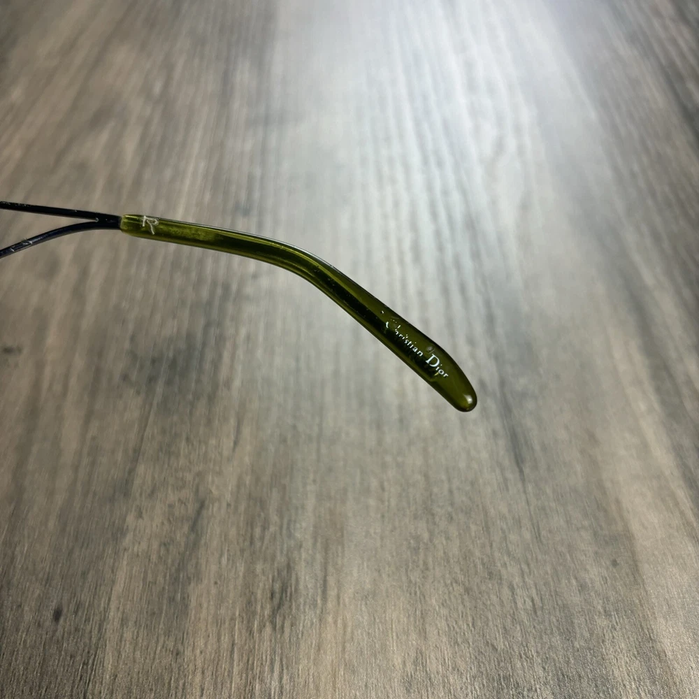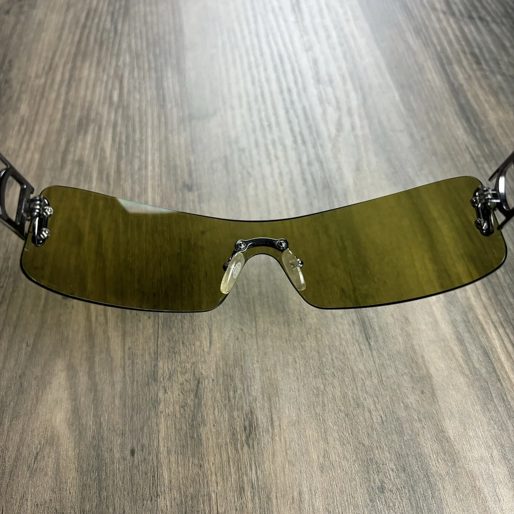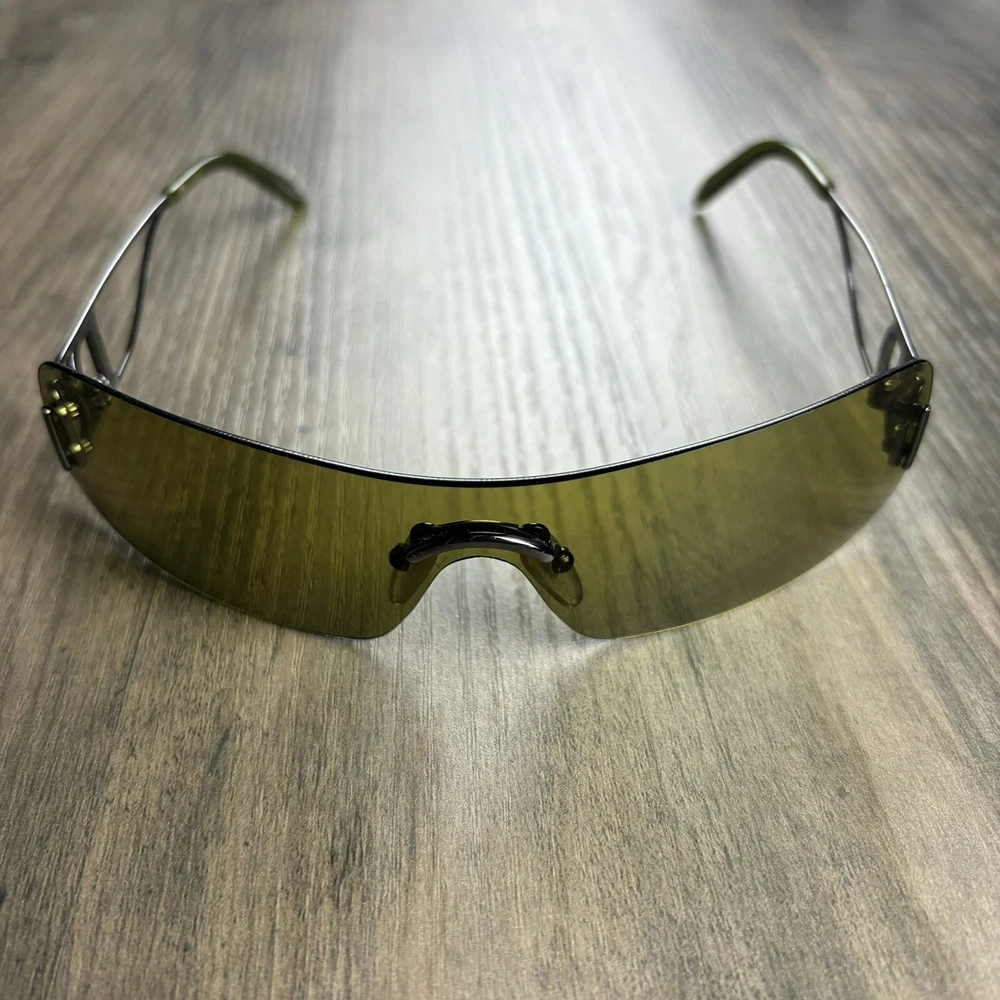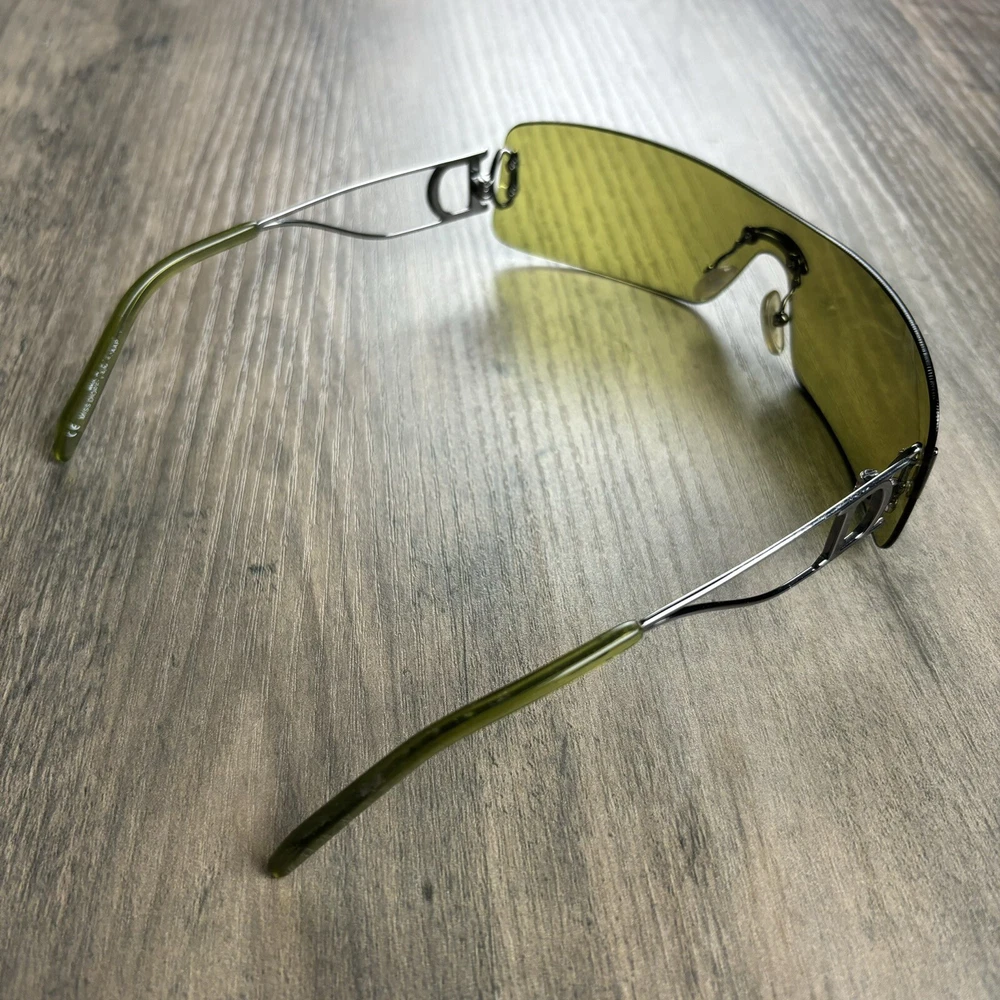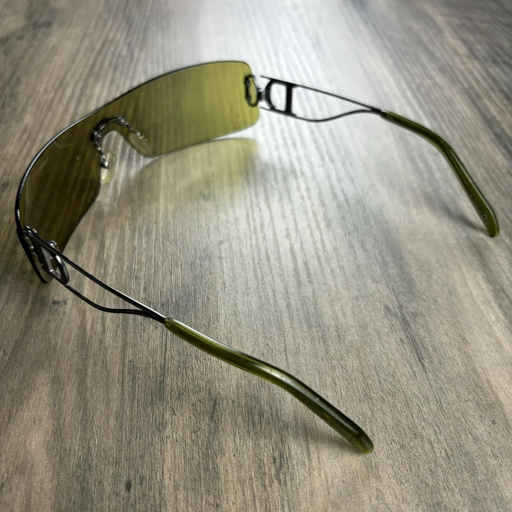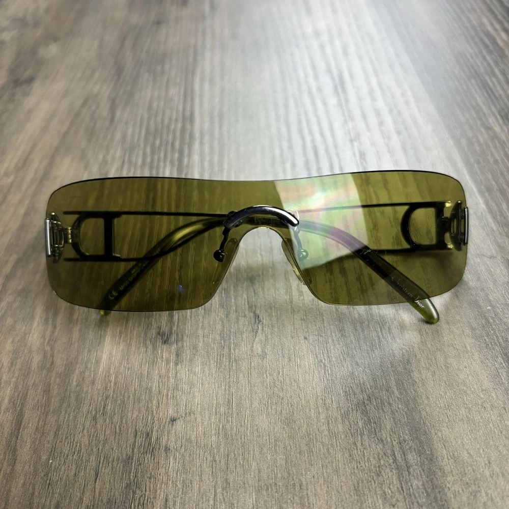 Vintage Christian Dior Miss Diorella Olive Green Shield Rimless Sunglasses Y2K