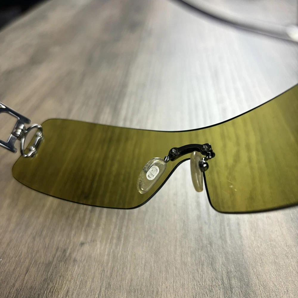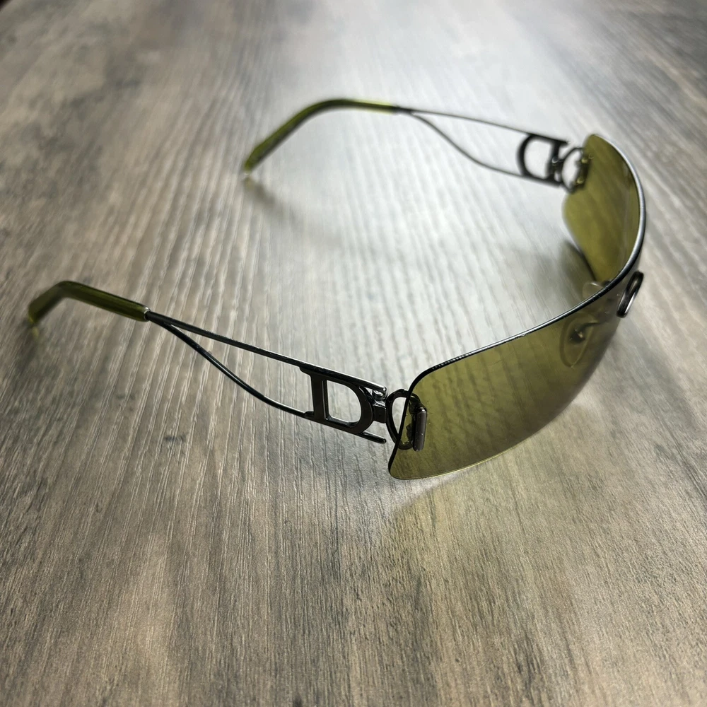 Lens Color: Green Style: Shield Frame Color: Green Type: Sunglasses Vintage: Yes Theme: 90s, Designer, Festival, Hip Hop, Logo, Metal, Grunge, Outdoor, Paris, Punk, Skull Frame Material: Metal Country/Region of Manufacture: Italy Department: Women Features: Rimless Model: Christian Dior Miss Diorella Brand: Dior
