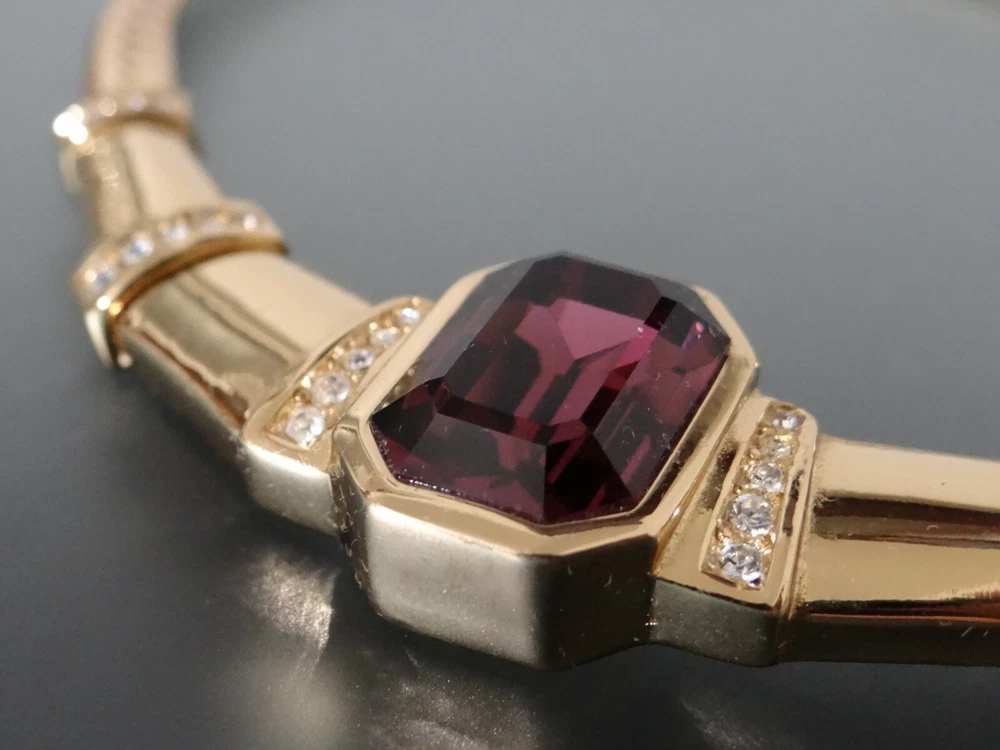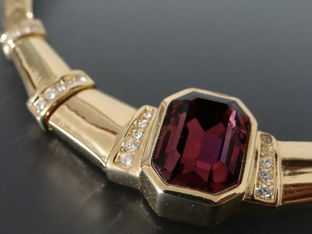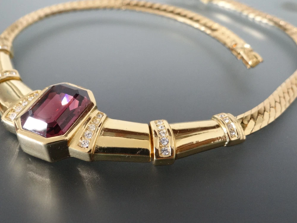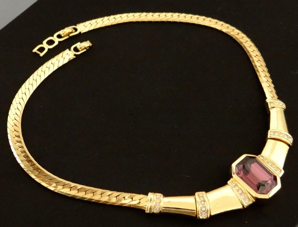 Stunning!! Vintage High End Signed Christian Dior "Chr.Dior" Vintage High End Christian Dior Runway Golden and Centered Cabochon Purple Amethyst Crystal Choker Necklace with extra Link Clasp. All In Excellent condition. Approx. measure 15" Long Thank you for looking and considering this item. Using the description, your knowledge and experience with this type of item, any Q&A messaging, along with all of the photos, decide if this item is worthy to purchase for your use or to add to the collection. Please, be aware that the vast majority of my pieces are vintage or antique and consequently NOT IN NEW or MINT CONDITION. Please, Payment is expected within three days from the end of this auction I ask that you message me to let me know that you are still shopping, usually I will open an unpaid item case 3 days after the auctions has ended Free Returns only Before 14 days.