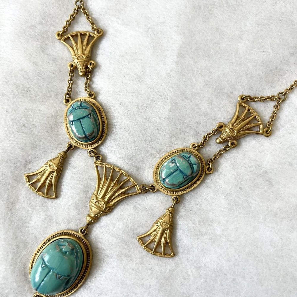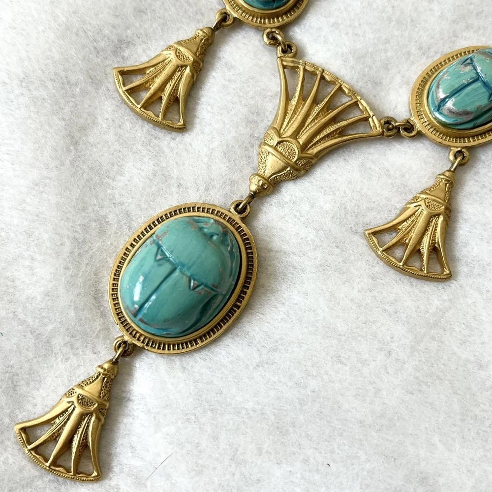 Absolutely stunning vintage piece! The turquoise blue and gold combo is elegant and eye-catching. The necklace has a luxurious feel and drapes beautifully. Perfect for adding a touch of classic glamour to any outfit. The craftsmanship is impeccable, and it arrived in great condition. Very happy with this unique find!