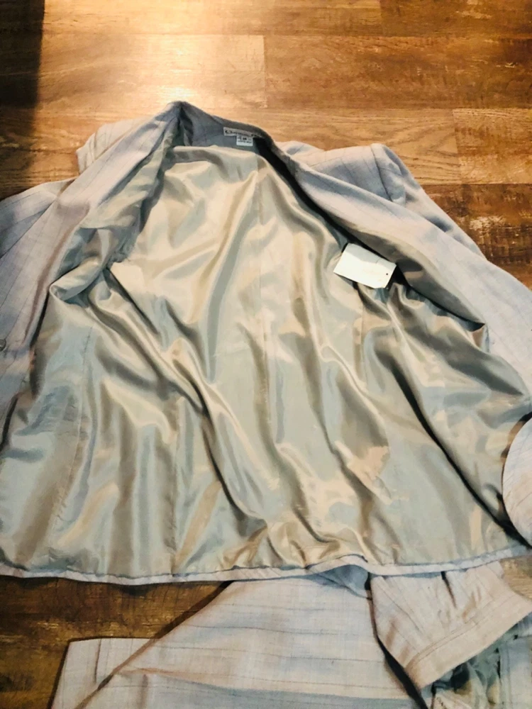 The Vintage Christian Doir pant suit is a classic two-piece ensemble perfect for women looking for a sophisticated and timeless style. Made from 100% cotton in a stylish gray color, this suit features a regular fit in size 14. The Christian Doir brand is known for its quality and attention to detail, making this pant suit a versatile and elegant addition to any wardrobe. Perfect for both formal occasions and professional settings, this vintage-inspired outfit is sure to make a statement with its timeless design and timeless appeal.