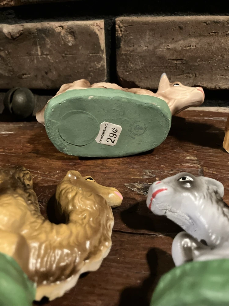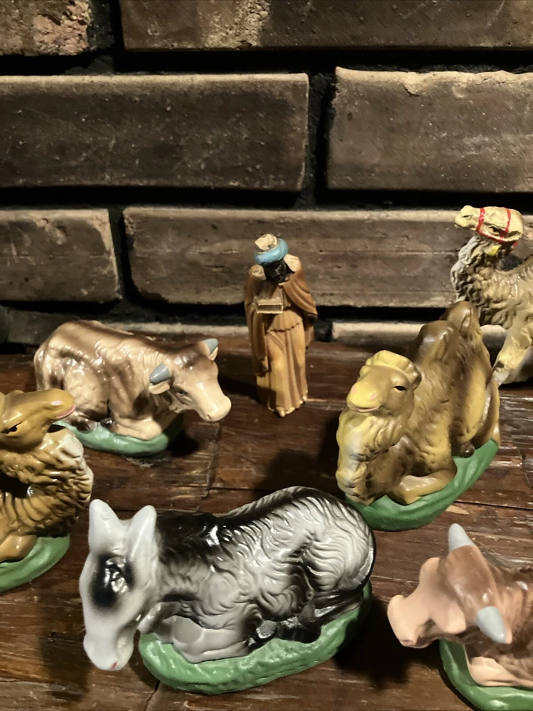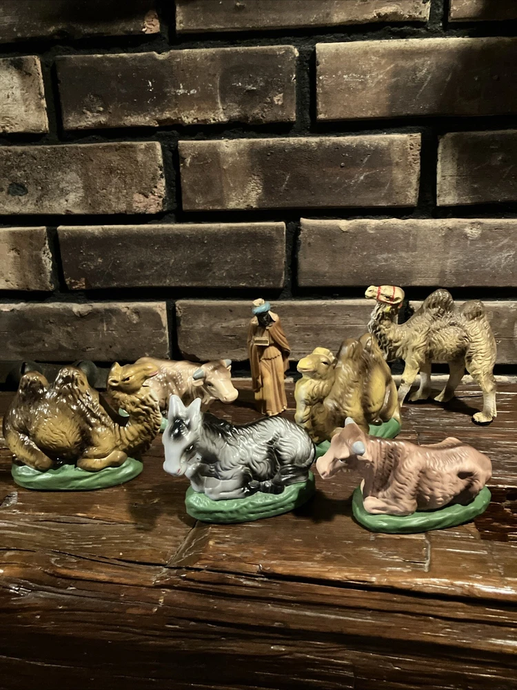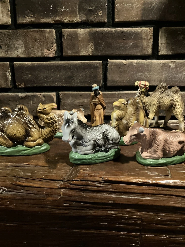 Material:ChalkwareSet Includes:Cow, camelUPC:Does Not ApplyType:Nativity FigureNumber of Items:3Time Period Manufactured:1950-1959Theme:NativityOccasion:ChristmasCollection:NativitySubject:AnimalShape:AnimalCountry/Region of Manufacture:Japangtin13:Does Not ApplyFeatures:Vintage, Hand Painted, Green BaseBrand:Unbranded