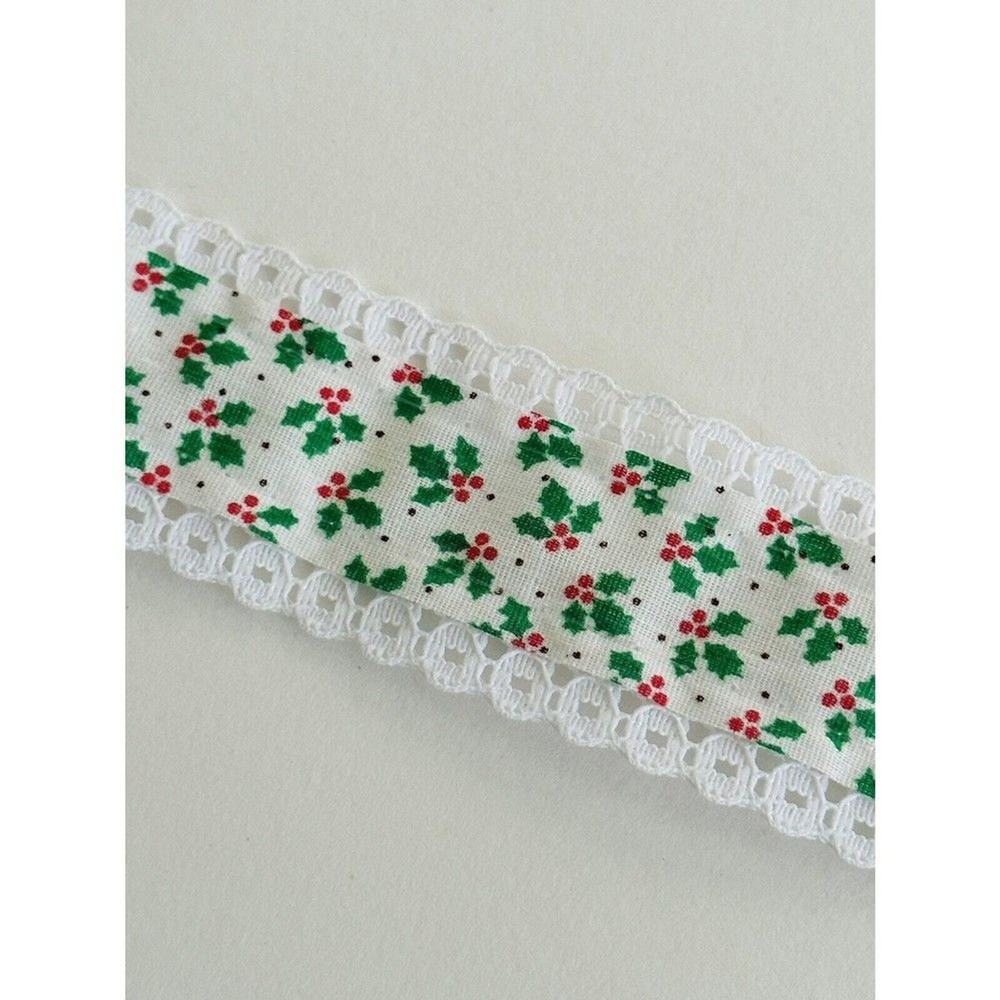 Vintage Christmas Holly & Ivy Lace Edge Trim Xmas Lace Trim 10yds Measurements: 10 yards x 1-1/4" width - Multiple Yards available - Message me if you would like more or less yards. Material: Cotton blend My home is pet free and smoke free; however, some items were acquire and have unknown history. To view other items I have for sale, click on my name. I am willing to bundle to save on shipping. #trim #lace #xmastrim #winksstoreroom #vintagetrim