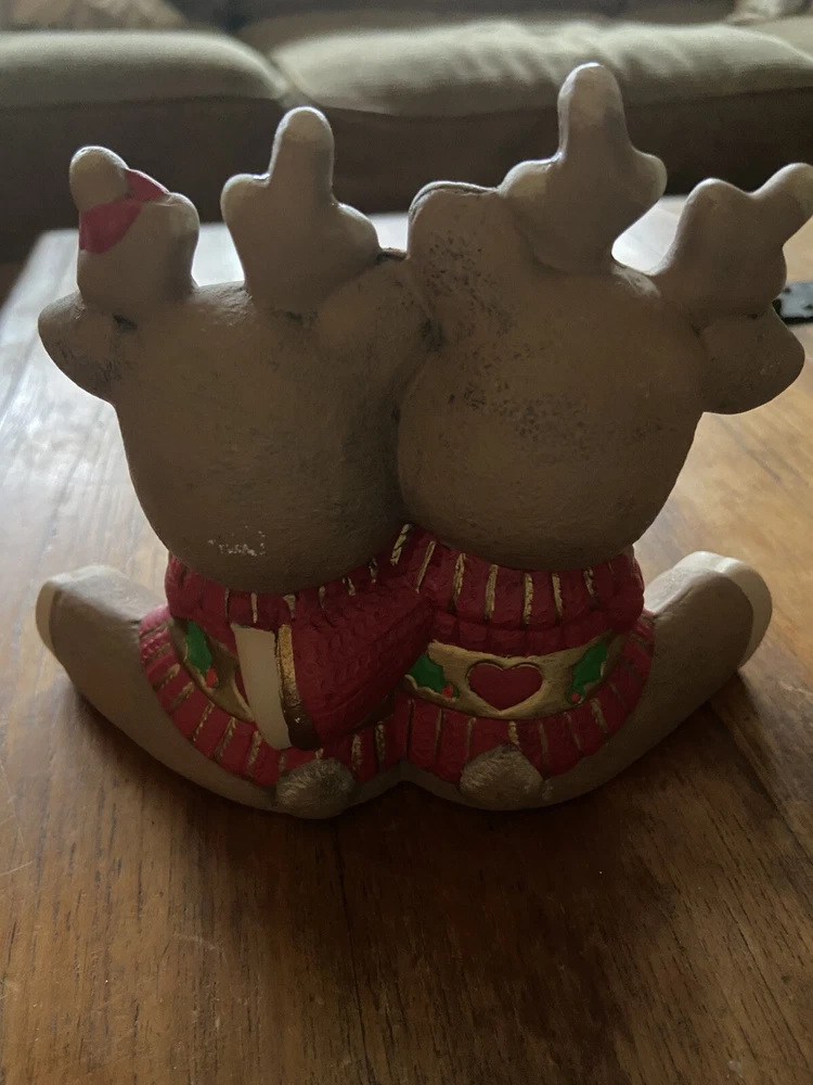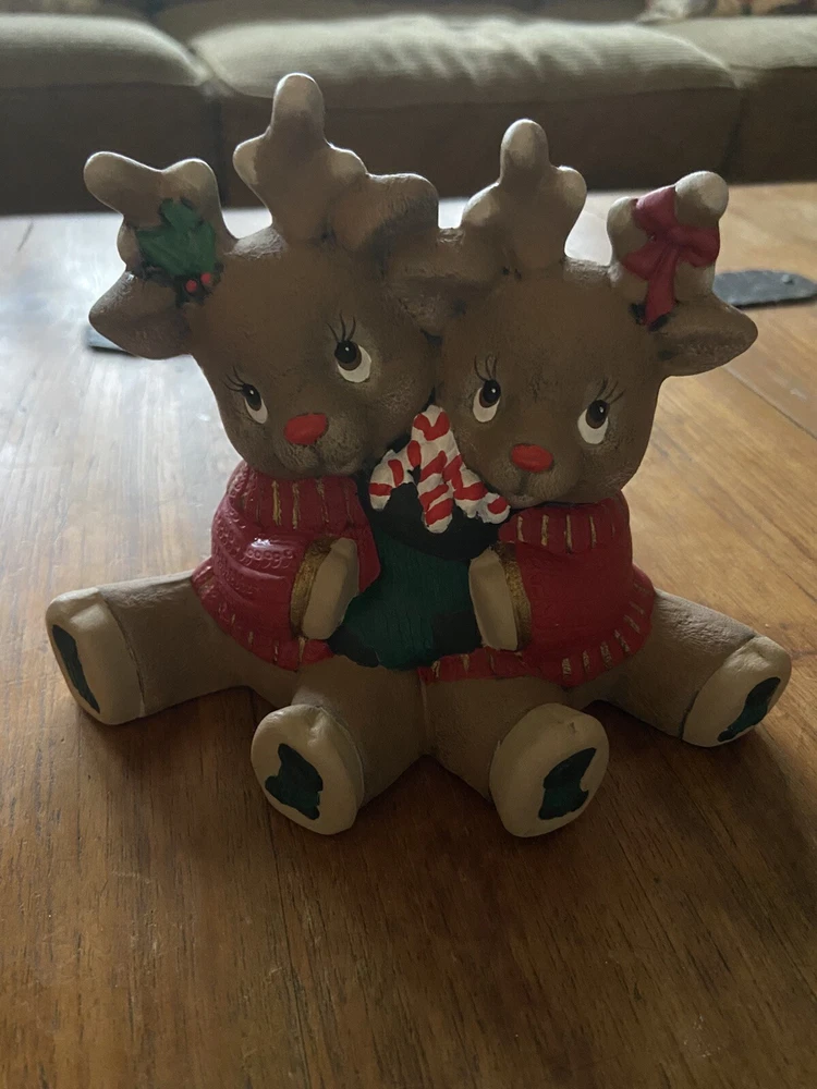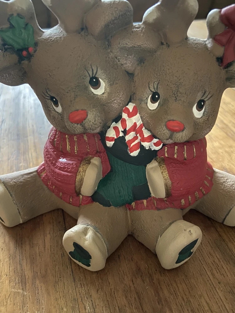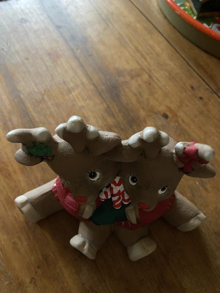 HomeVintage Christmas Reindeer Figurine Hugging Hand Painted Ceramic Mold