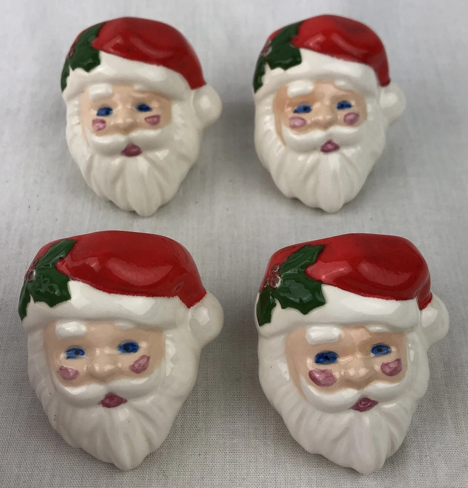 HomeVintage Christmas Santa Face Napkin Rings Set Of 4 Ceramic More Available