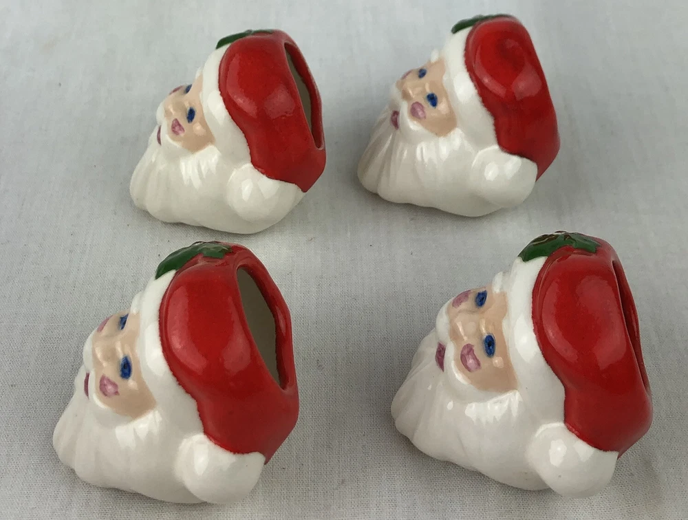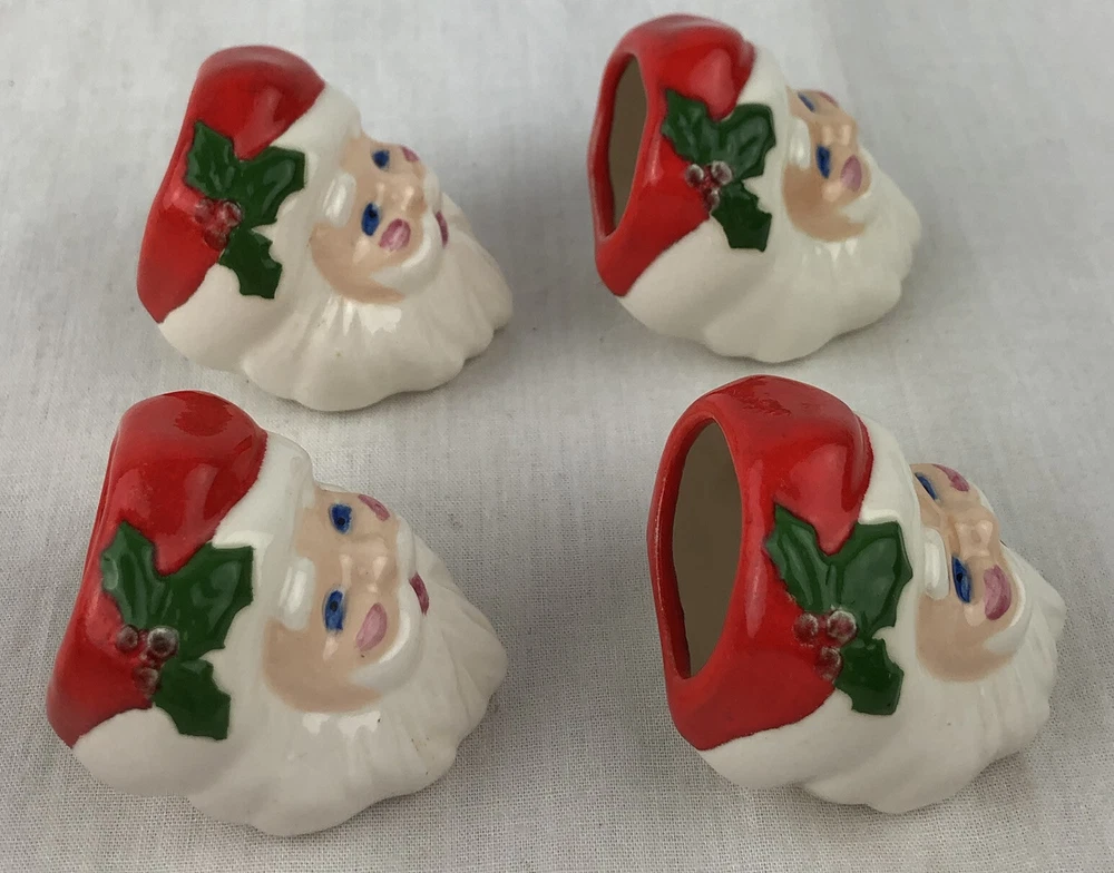 Vintage Christmas Santa Face Napkin Rings Set Of 4 Ceramic More Available