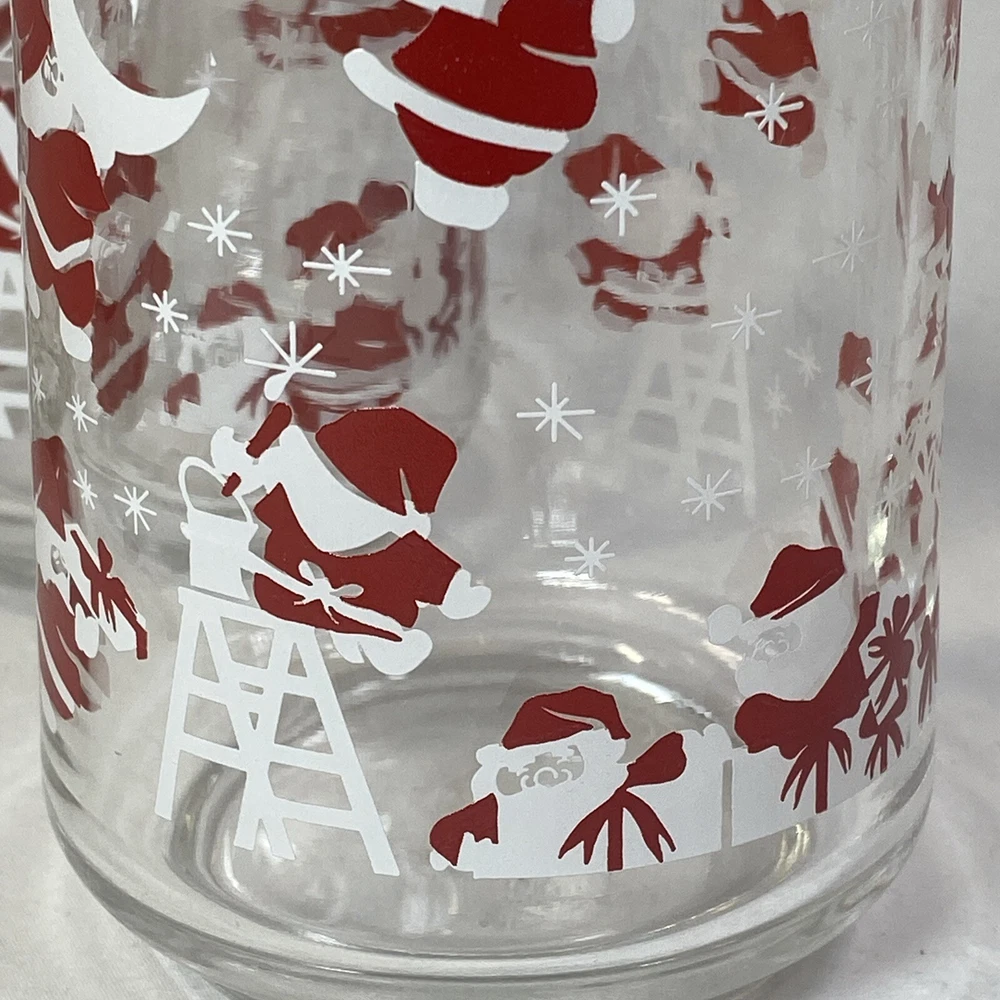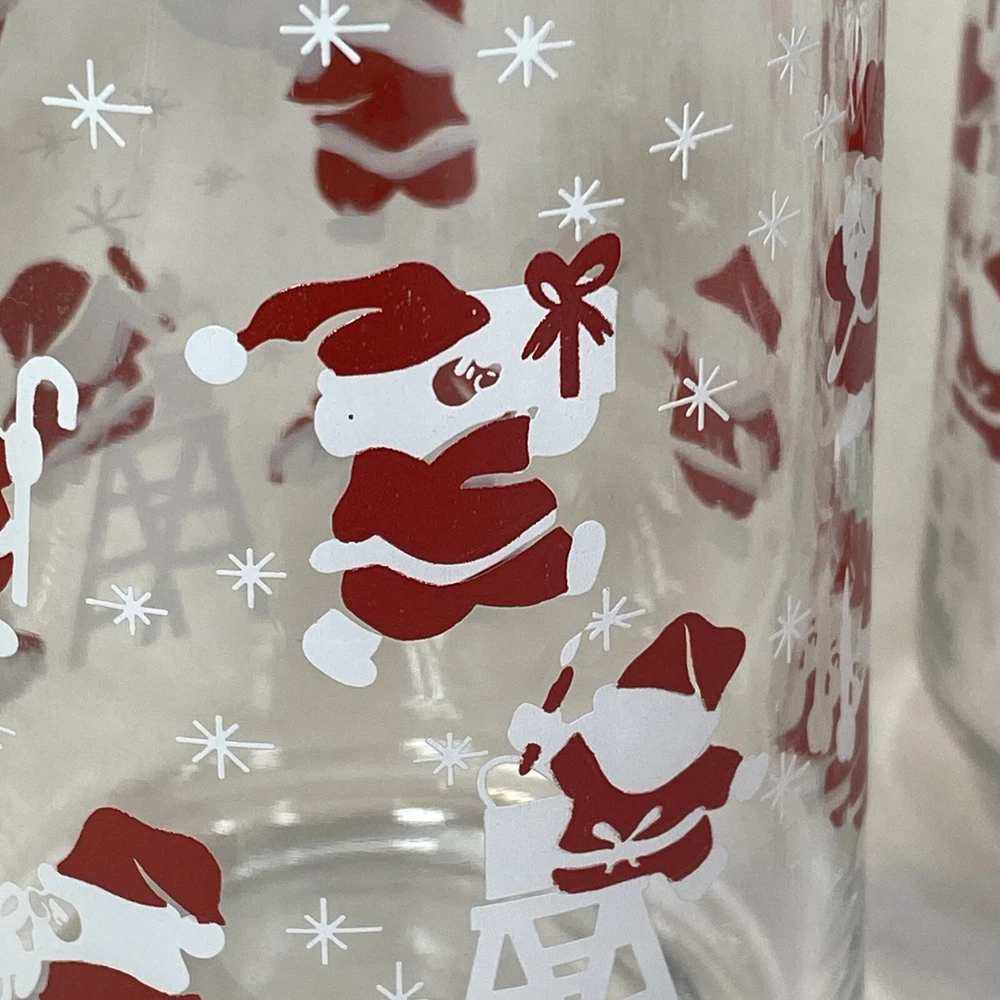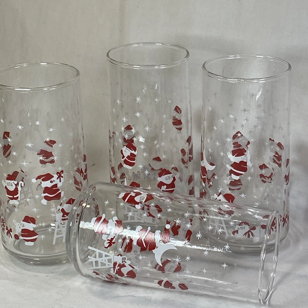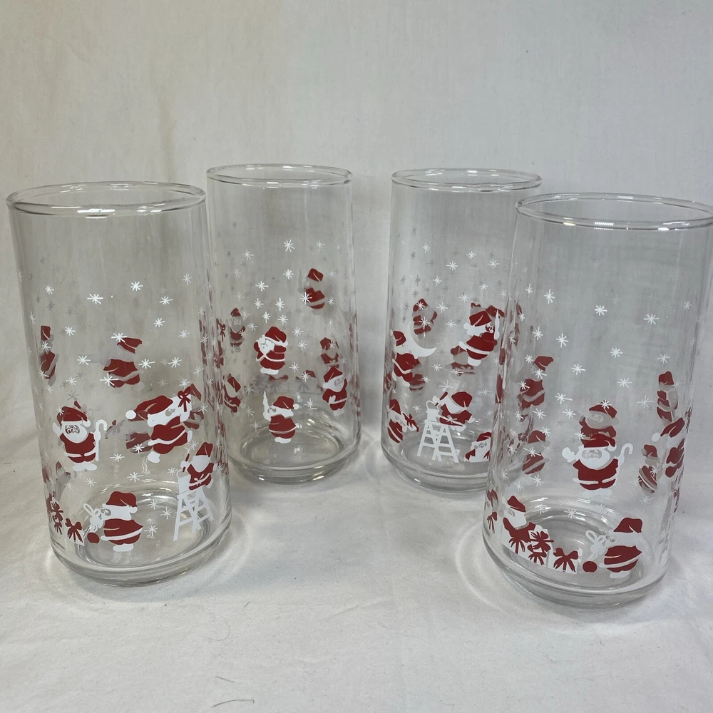 Vintage Christmas Santa & Reindeer Drinking Glasses Set of 4